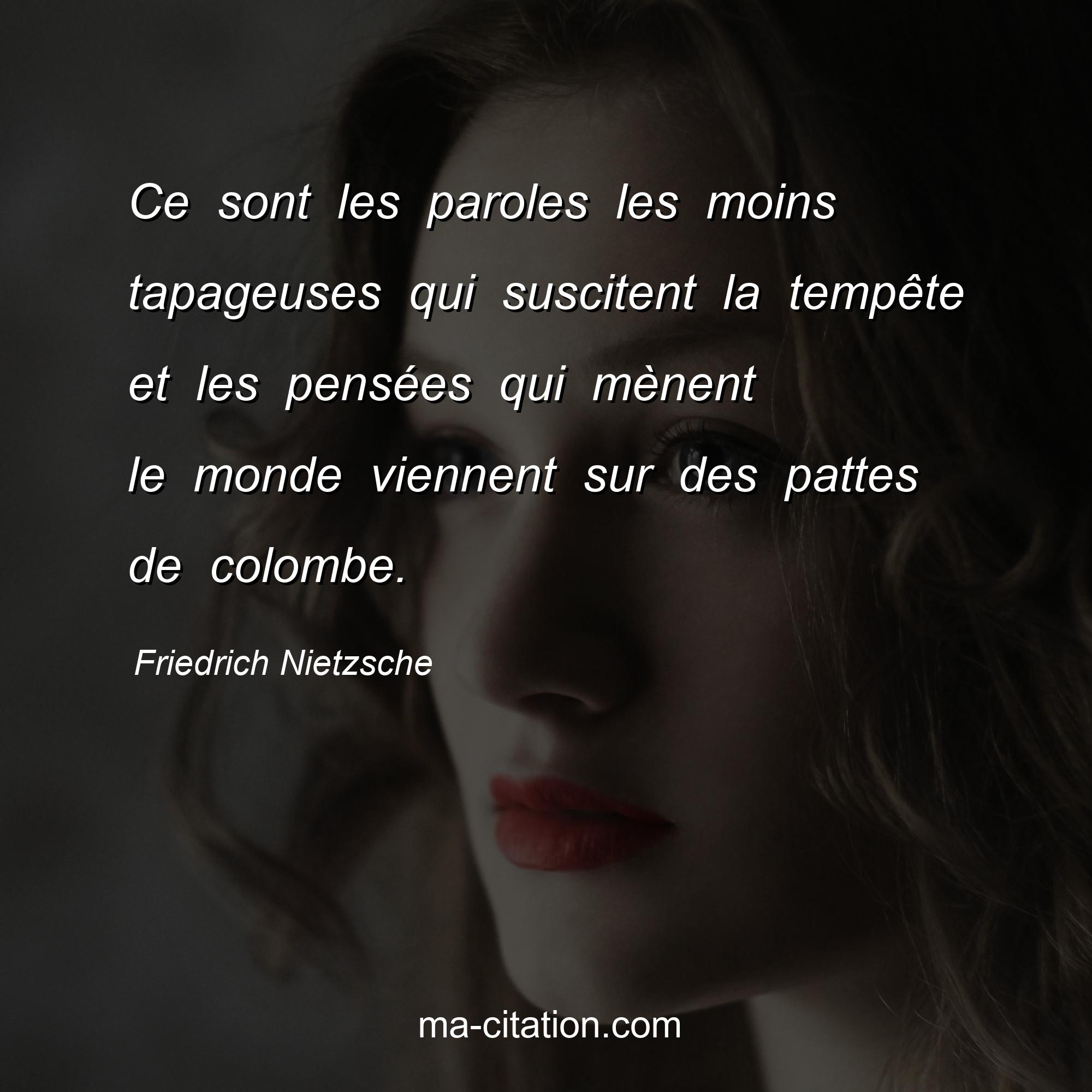 Friedrich Nietzsche : Ce sont les paroles les moins tapageuses qui suscitent la tempête et les pensées qui mènent le monde viennent sur des pattes de colombe.