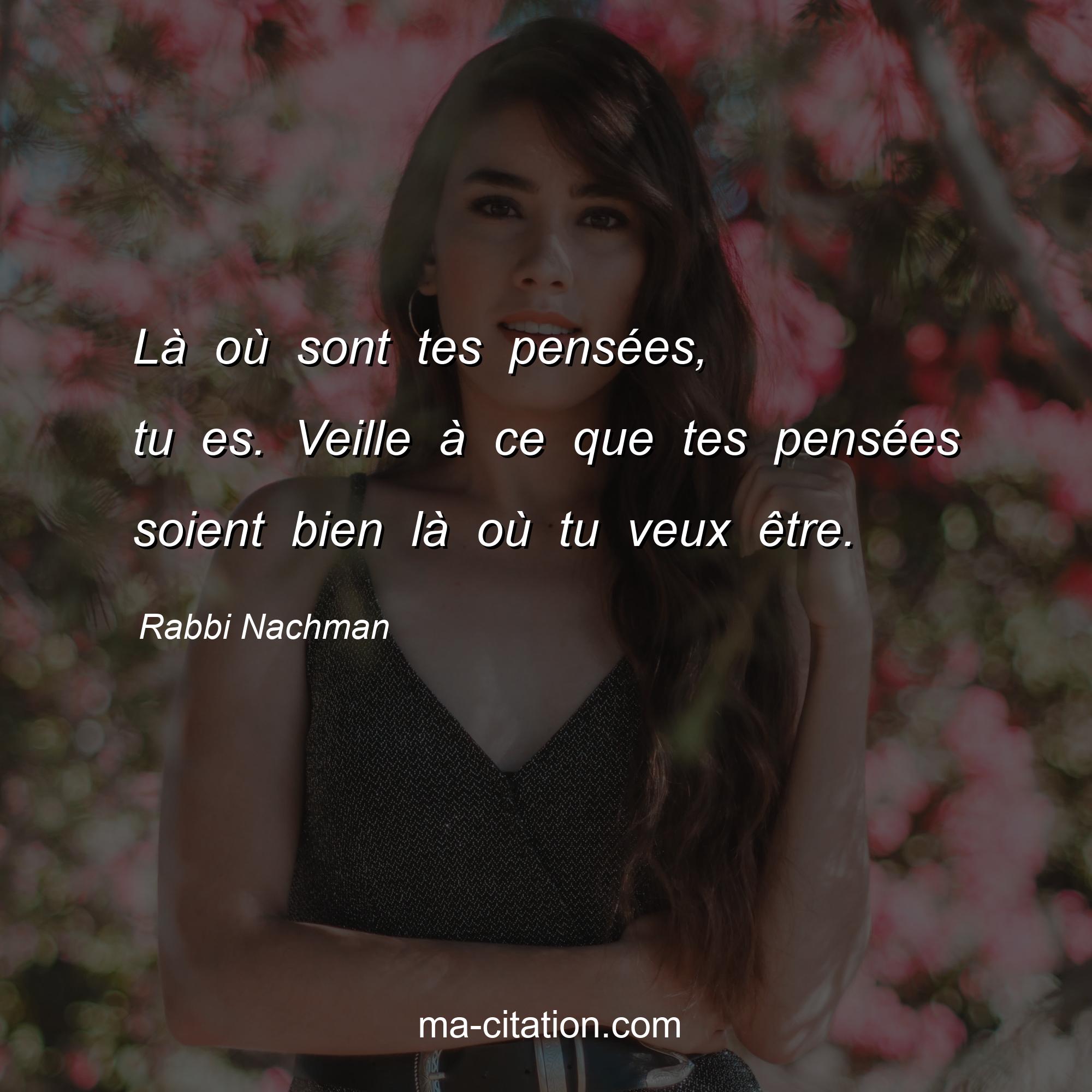 Citation sur la vie de Rabbi Nachman :Là où sont tes pensées, tu es. Veille à ce que tes pensées soient bien là où tu veux être.