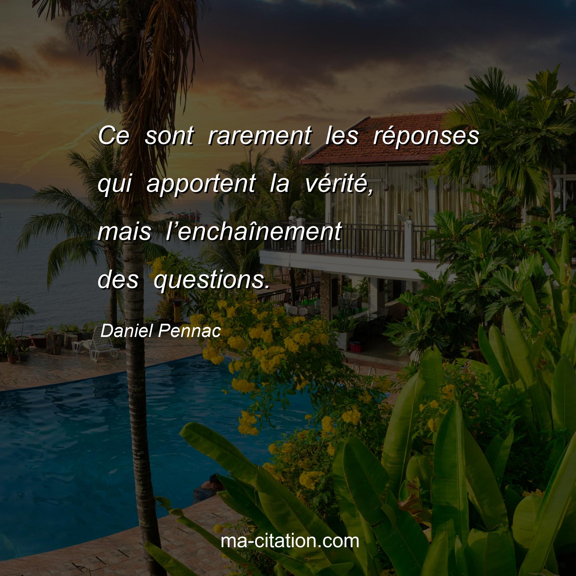 Daniel Pennac est l'auteur de la citation sur la vie "Ce sont rarement les réponses qui apportent la vérité, mais l’enchaînement des questions.".
