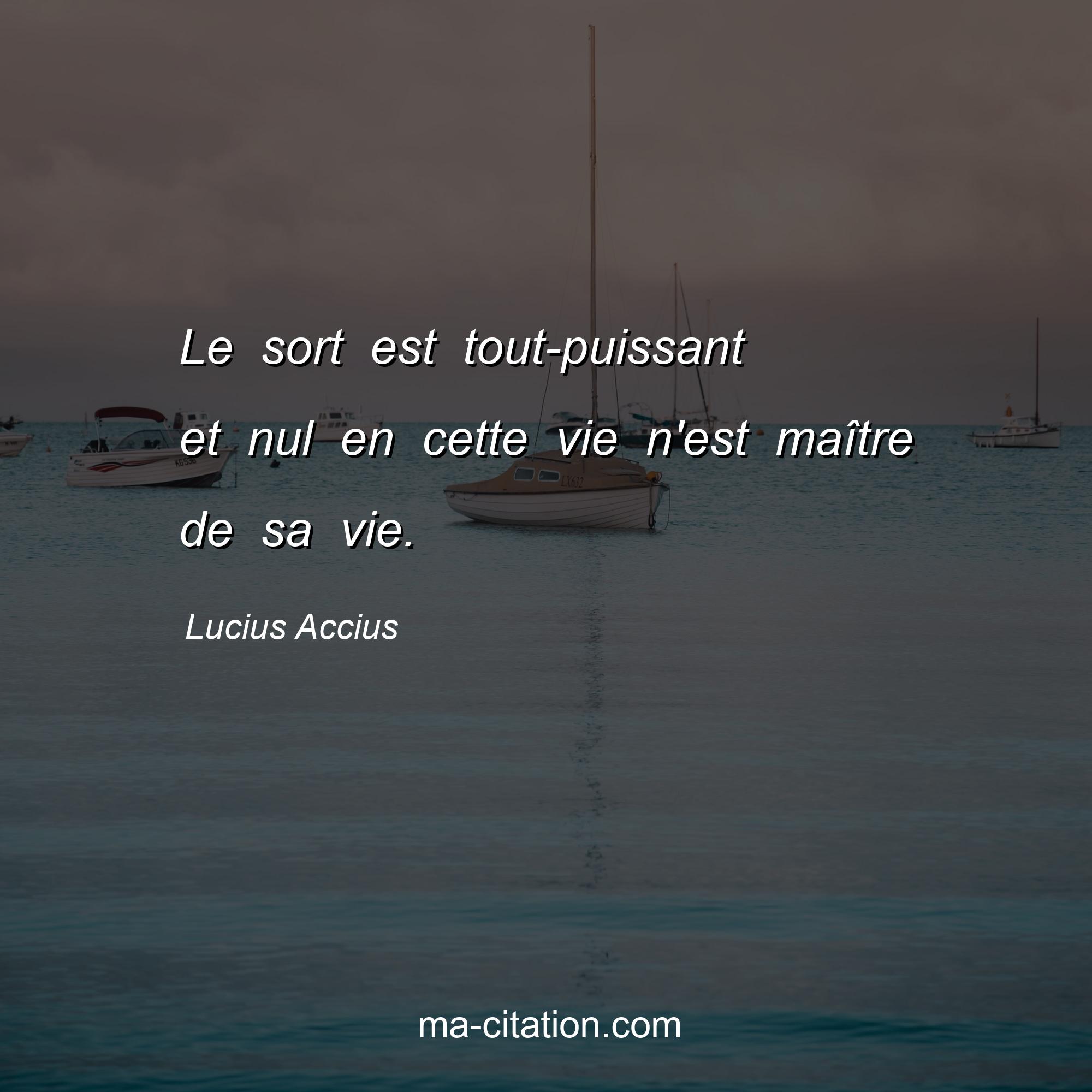 Citation sur la vie de Lucius Accius :Le sort est tout-puissant et nul en cette vie n'est maître de sa vie.