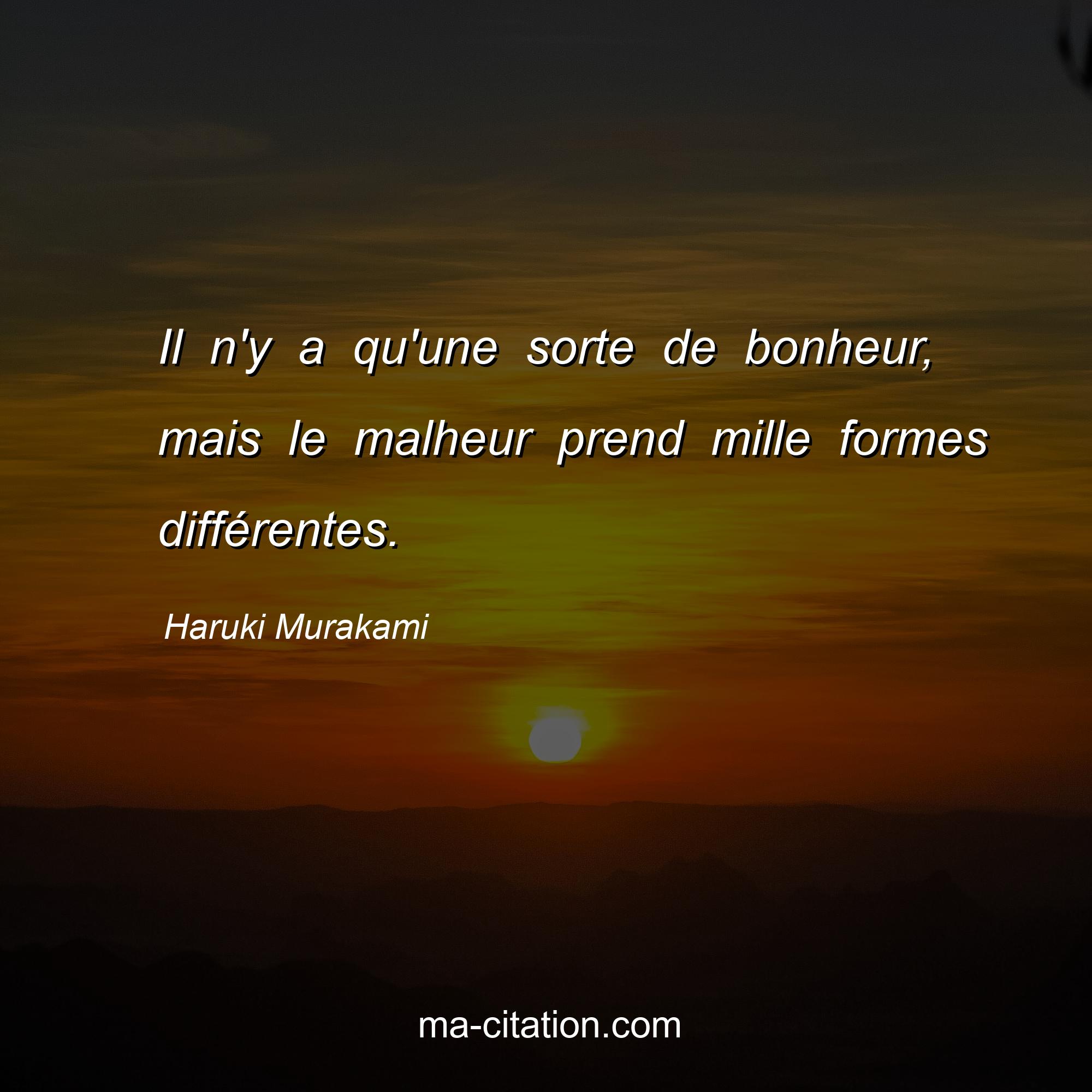 Citation sur la vie de Haruki Murakami :Il n'y a qu'une sorte de bonheur, mais le malheur prend mille formes différentes.
