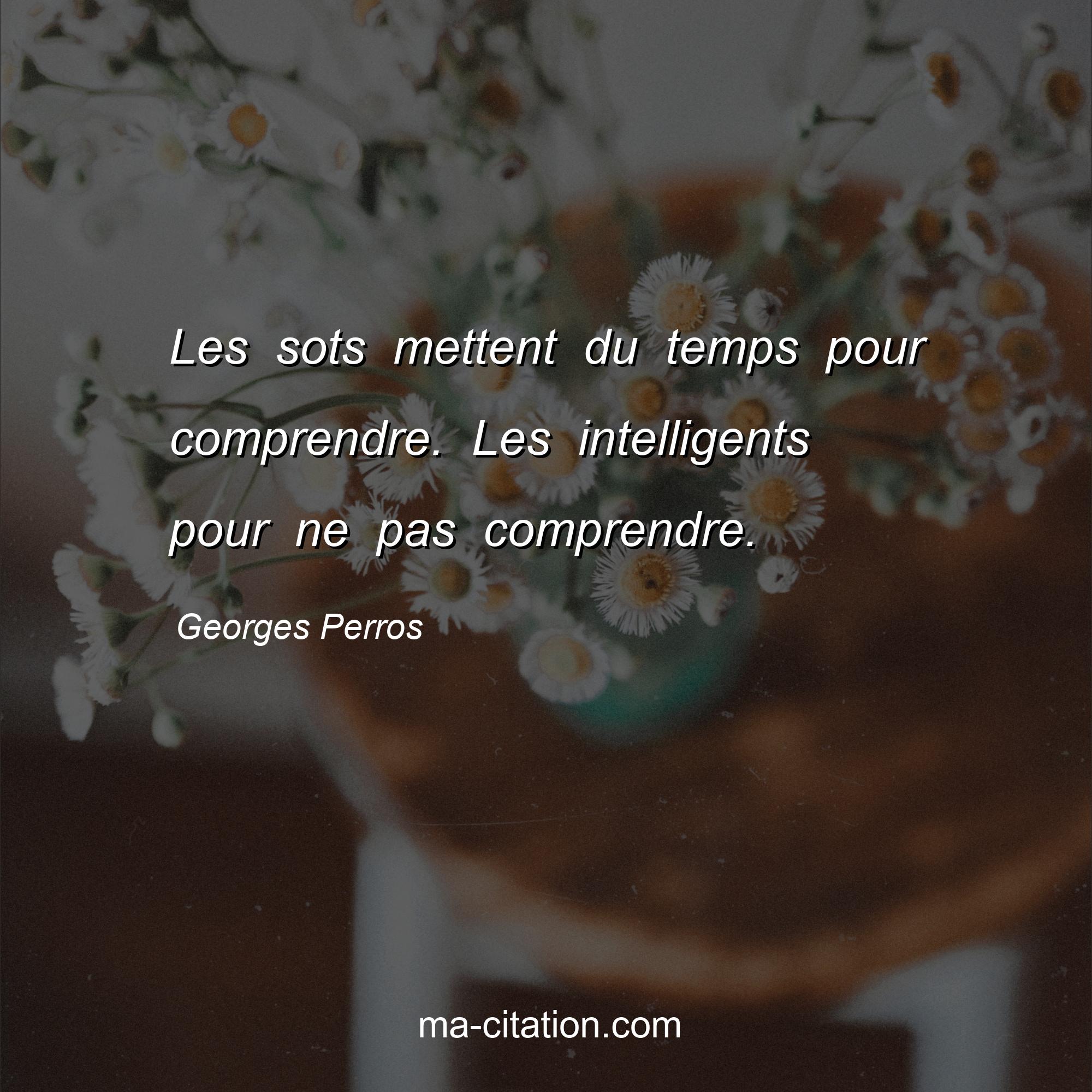 Citation sur la vie de Georges Perros :Les sots mettent du temps pour comprendre. Les intelligents pour ne pas comprendre.