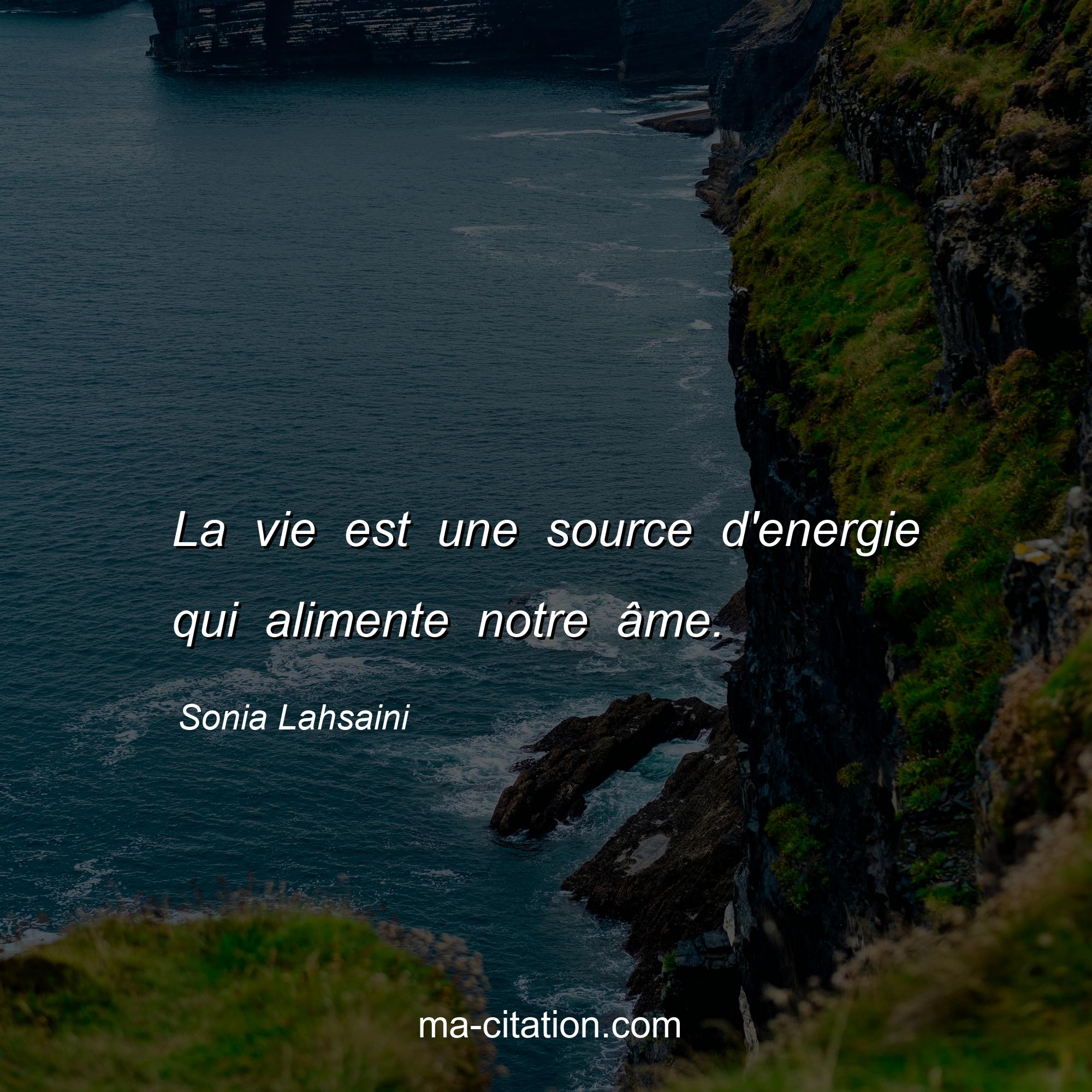 Citation sur la vie de Sonia Lahsaini :La vie est une source d'energie qui alimente notre âme.