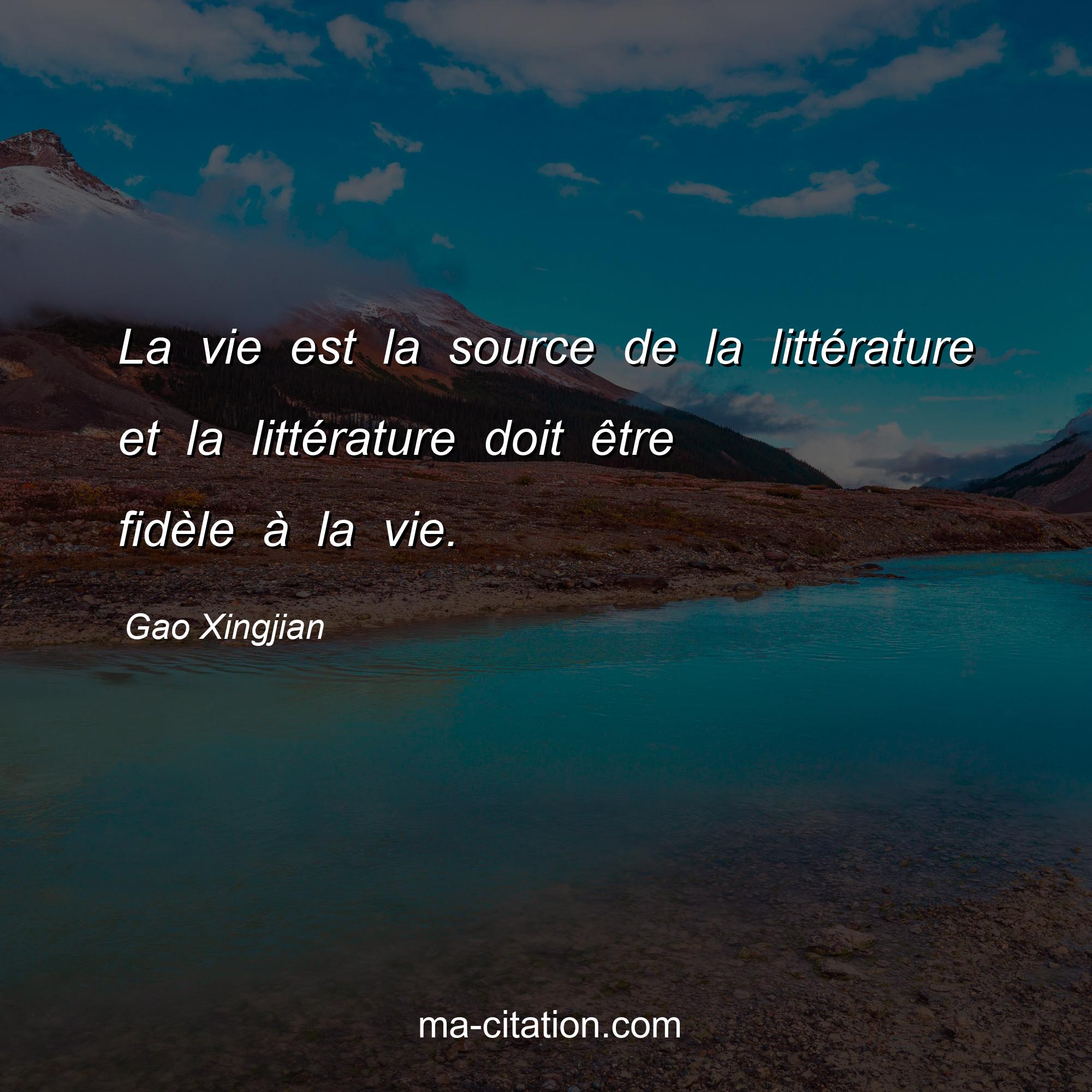 Gao Xingjian est l'auteur de la citation sur la vie "La vie est la source de la littérature et la littérature doit être fidèle à la vie.".