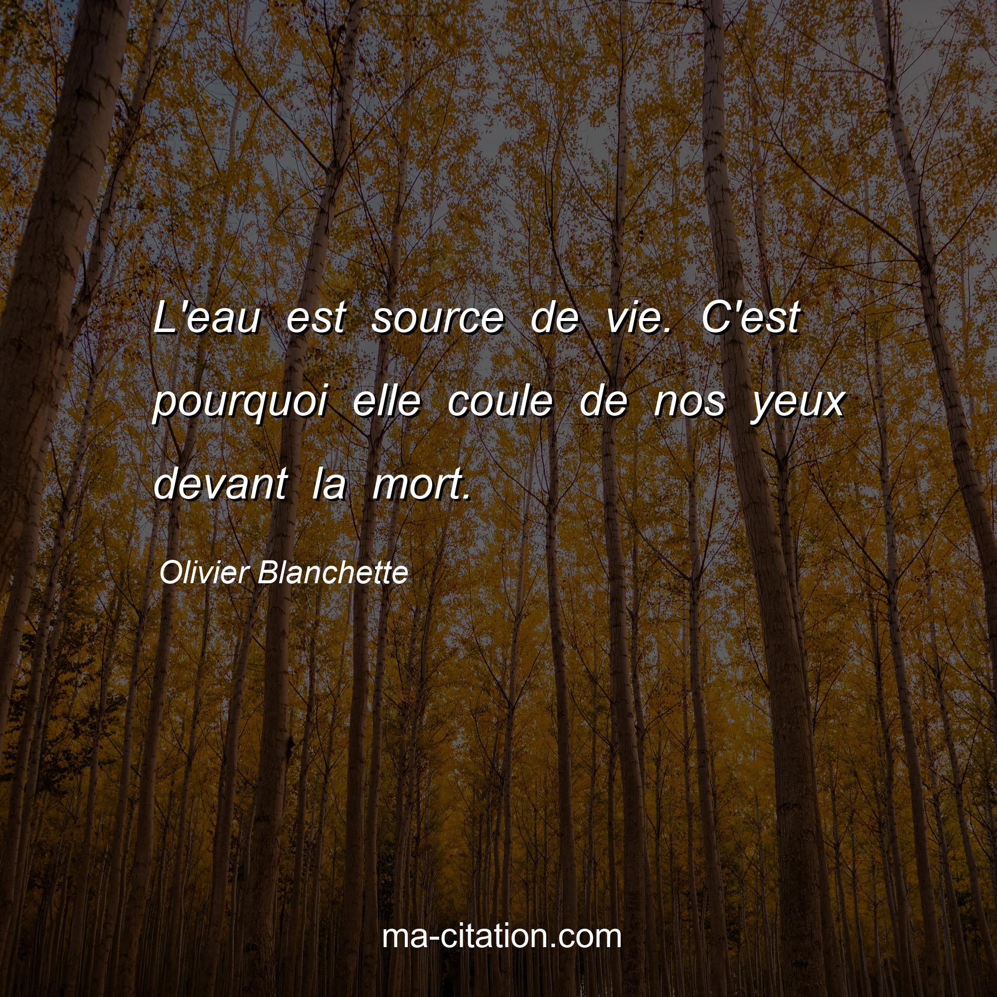 Olivier Blanchette est l'auteur de la citation sur la vie "L'eau est source de vie. C'est pourquoi elle coule de nos yeux devant la mort.".