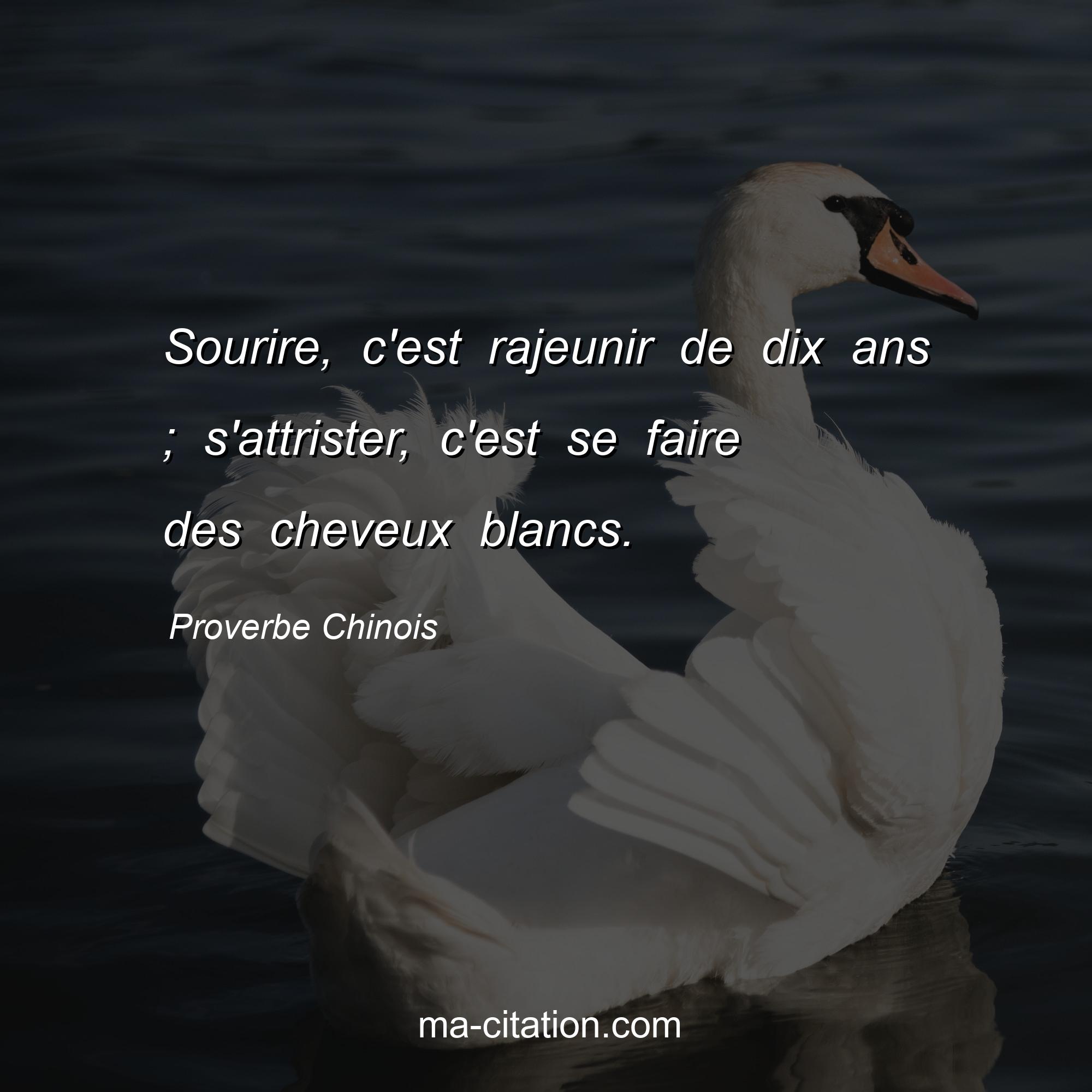 Sourire, c'est rajeunir de dix ans ; s'attrister, c'est se faire des cheveux blancs.