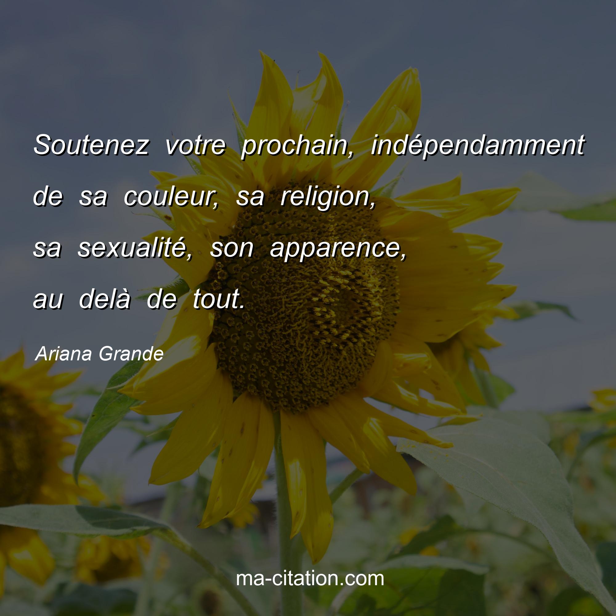 Citation sur la vie d'Ariana Grande :Soutenez votre prochain, indépendamment de sa couleur, sa religion, sa sexualité, son apparence, au delà de tout.