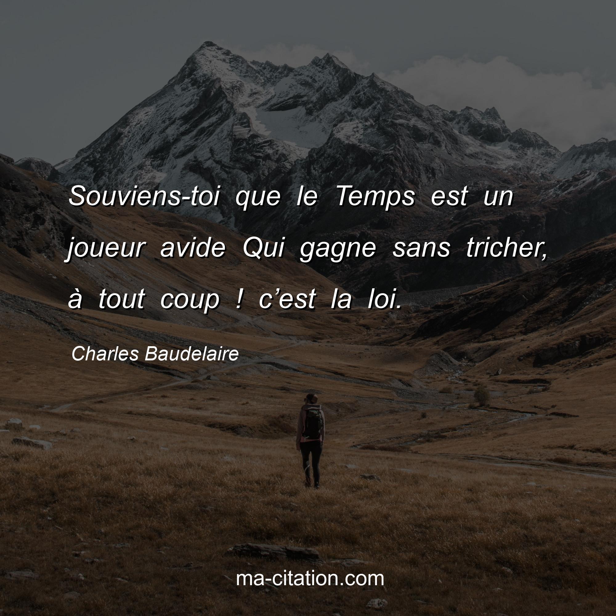 Citation sur la vie de Charles Baudelaire :Souviens-toi que le Temps est un joueur avide Qui gagne sans tricher, à tout coup ! c’est la loi.