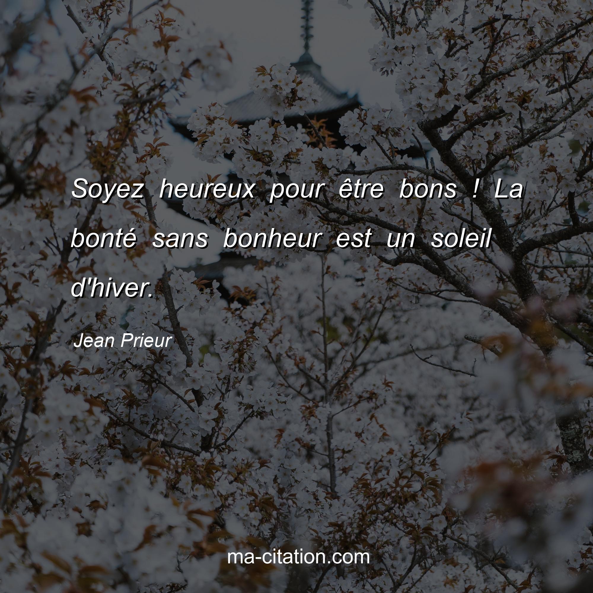 Jean Prieur est l'auteur de la citation sur la vie "Soyez heureux pour être bons ! La bonté sans bonheur est un soleil d'hiver.".