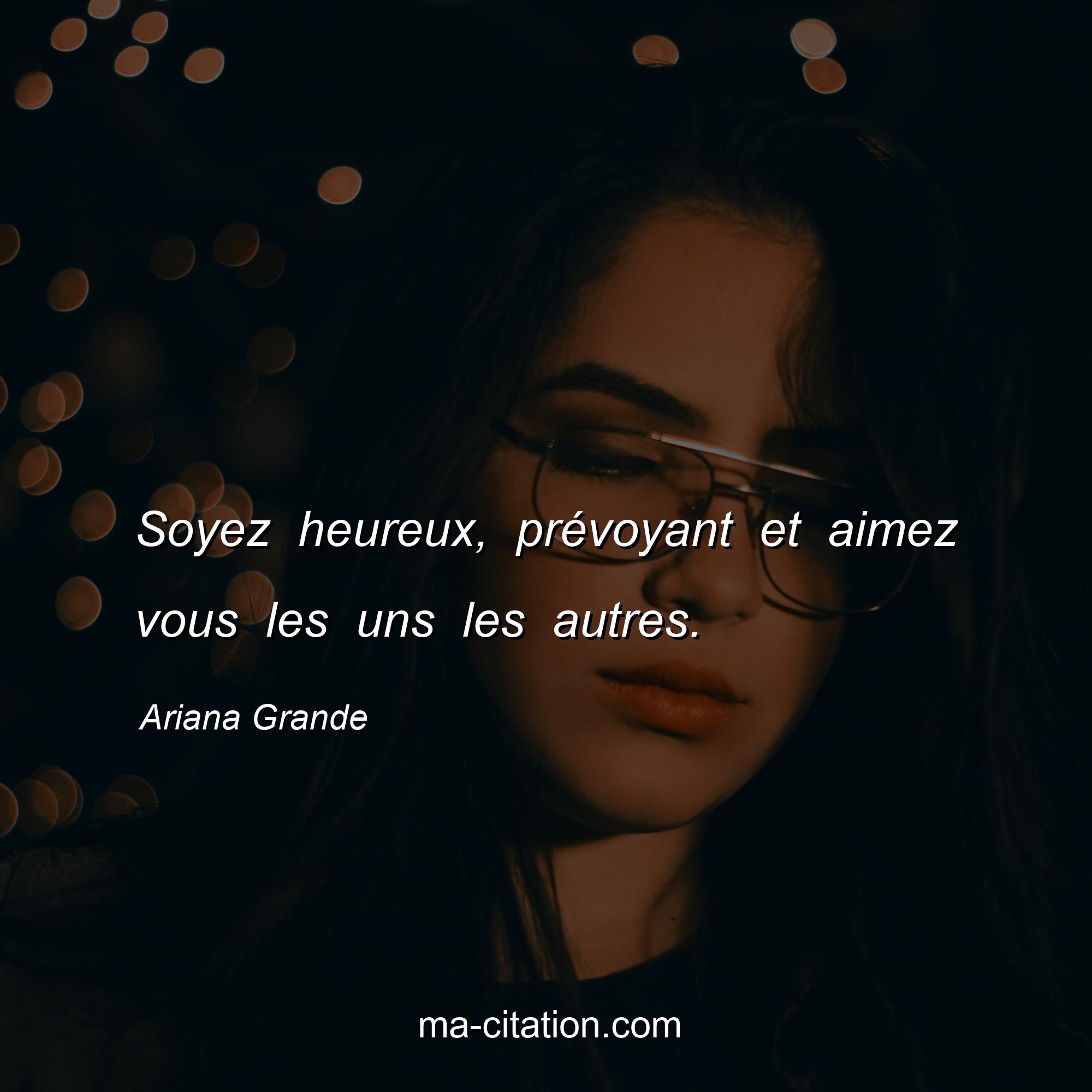 Citation sur la vie d'Ariana Grande :Soyez heureux, prévoyant et aimez vous les uns les autres.