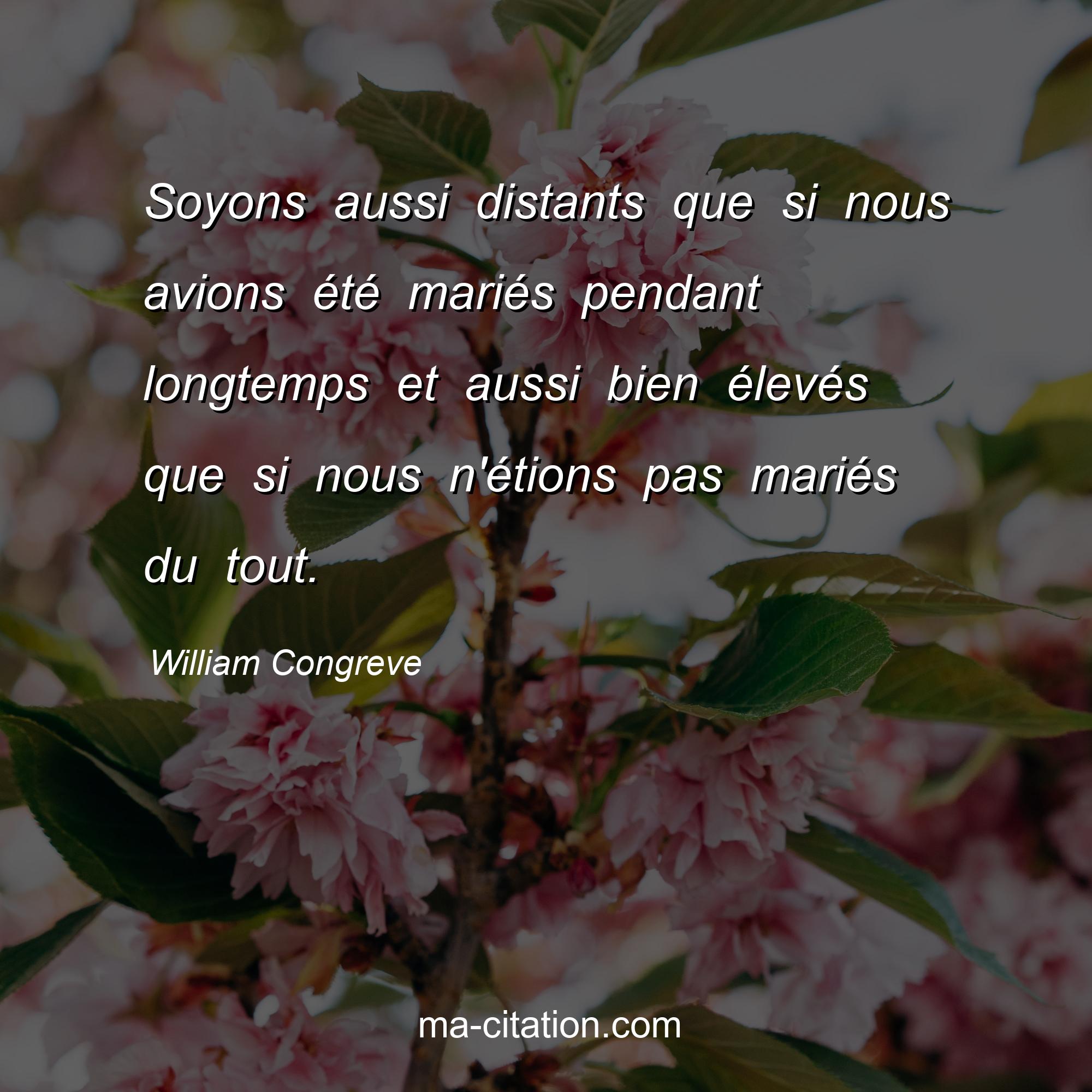 Citation sur la vie de William Congreve :Soyons aussi distants que si nous avions été mariés pendant longtemps et aussi bien élevés que si nous n'étions pas mariés du tout.