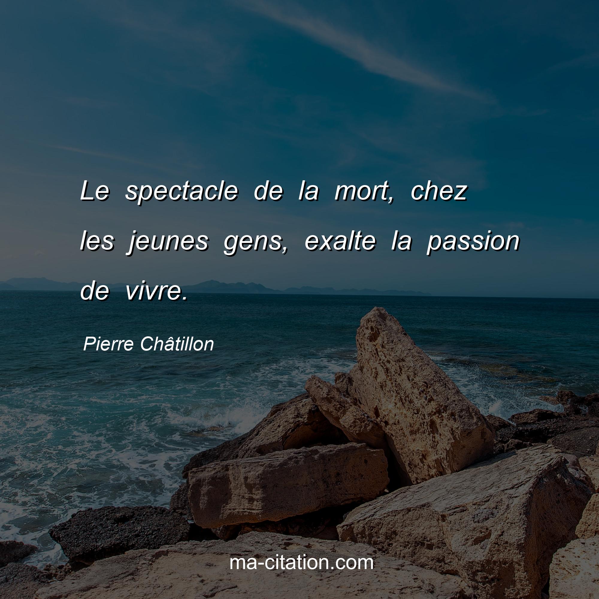 Pierre Châtillon est l'auteur de la citation sur la vie "Le spectacle de la mort, chez les jeunes gens, exalte la passion de vivre.".