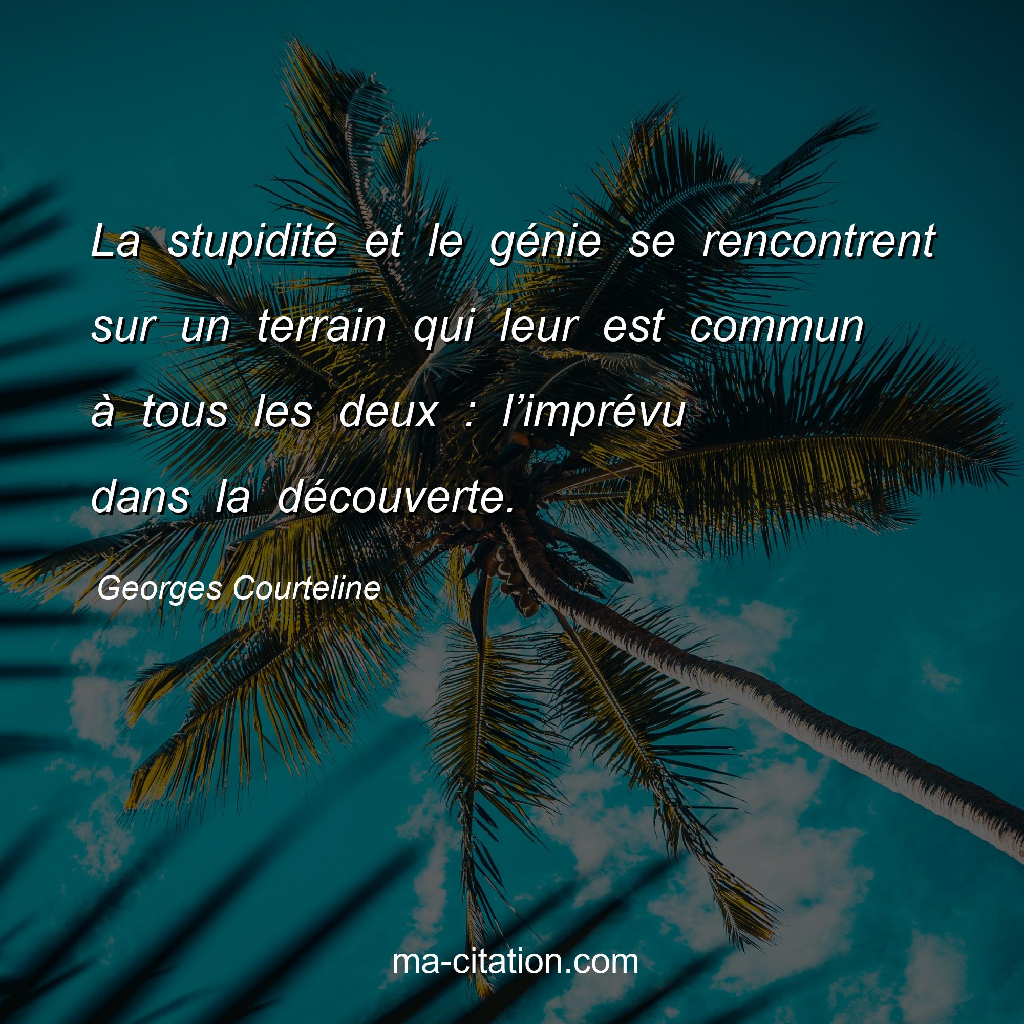 Citation sur la vie de Georges Courteline :La stupidité et le génie se rencontrent sur un terrain qui leur est commun à tous les deux : l’imprévu dans la découverte.