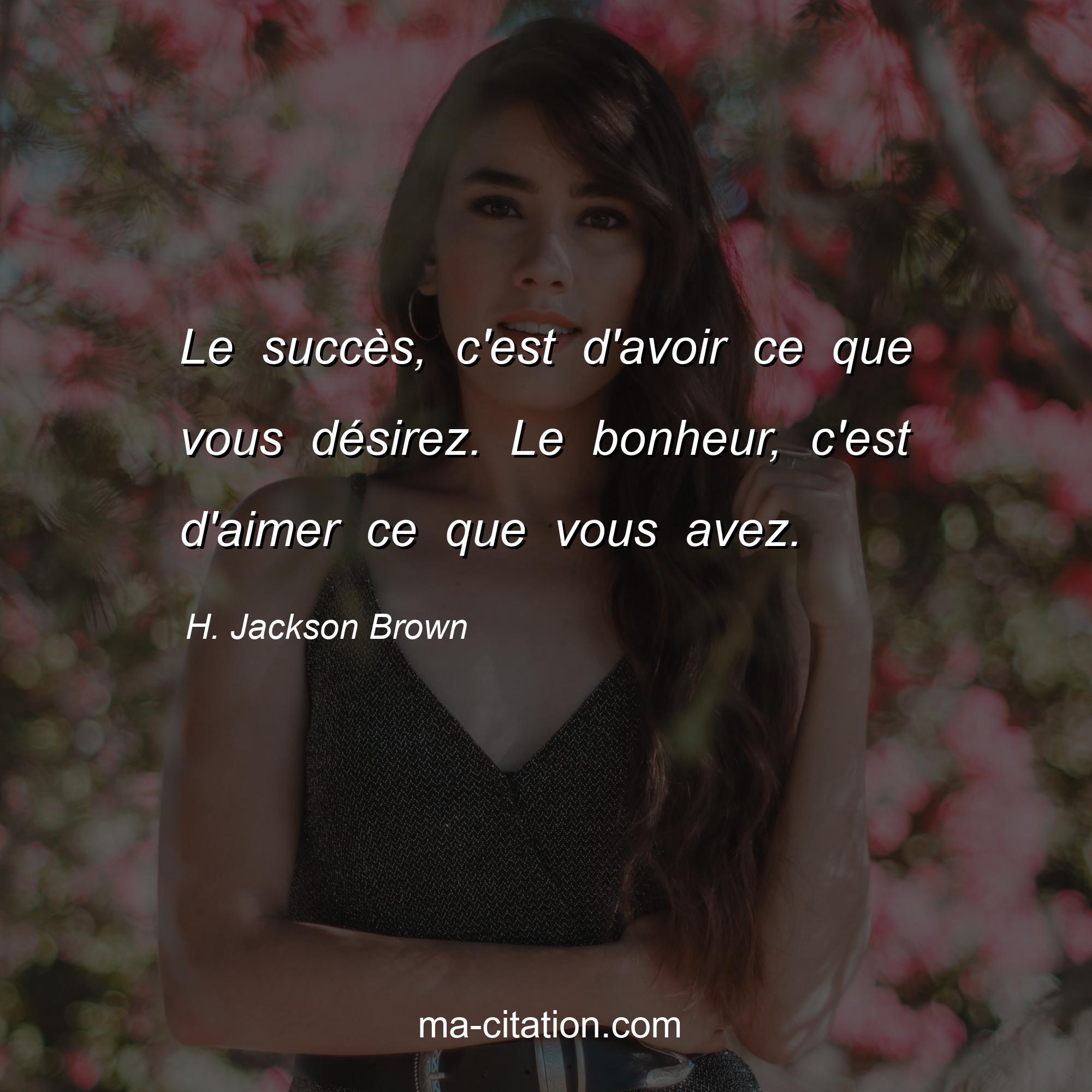 Citation sur la vie de H. Jackson Brown :Le succès, c'est d'avoir ce que vous désirez. Le bonheur, c'est d'aimer ce que vous avez.