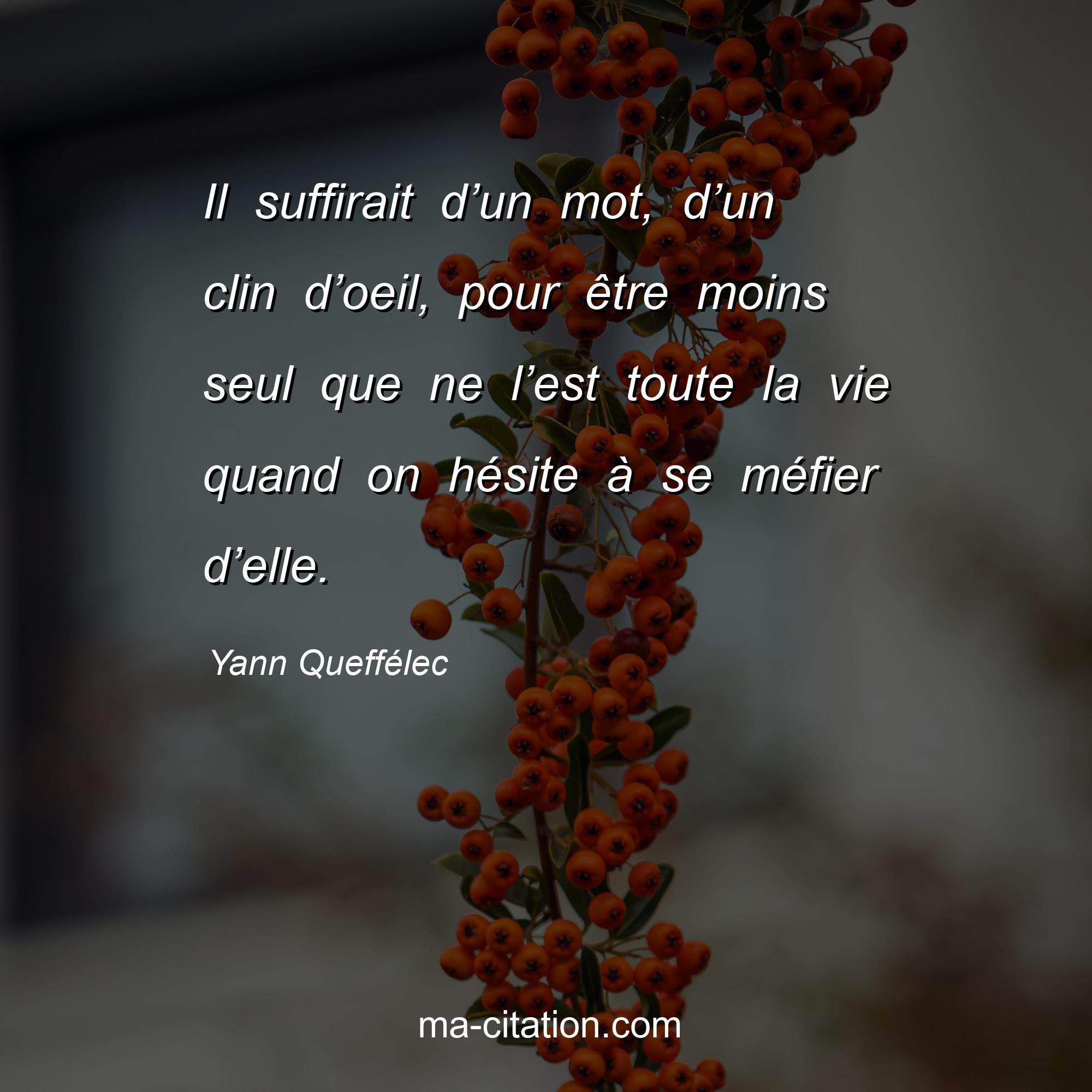 Yann Queffélec est l'auteur de la citation sur la vie "Il suffirait d’un mot, d’un clin d’oeil, pour être moins seul que ne l’est toute la vie quand on hésite à se méfier d’elle.".