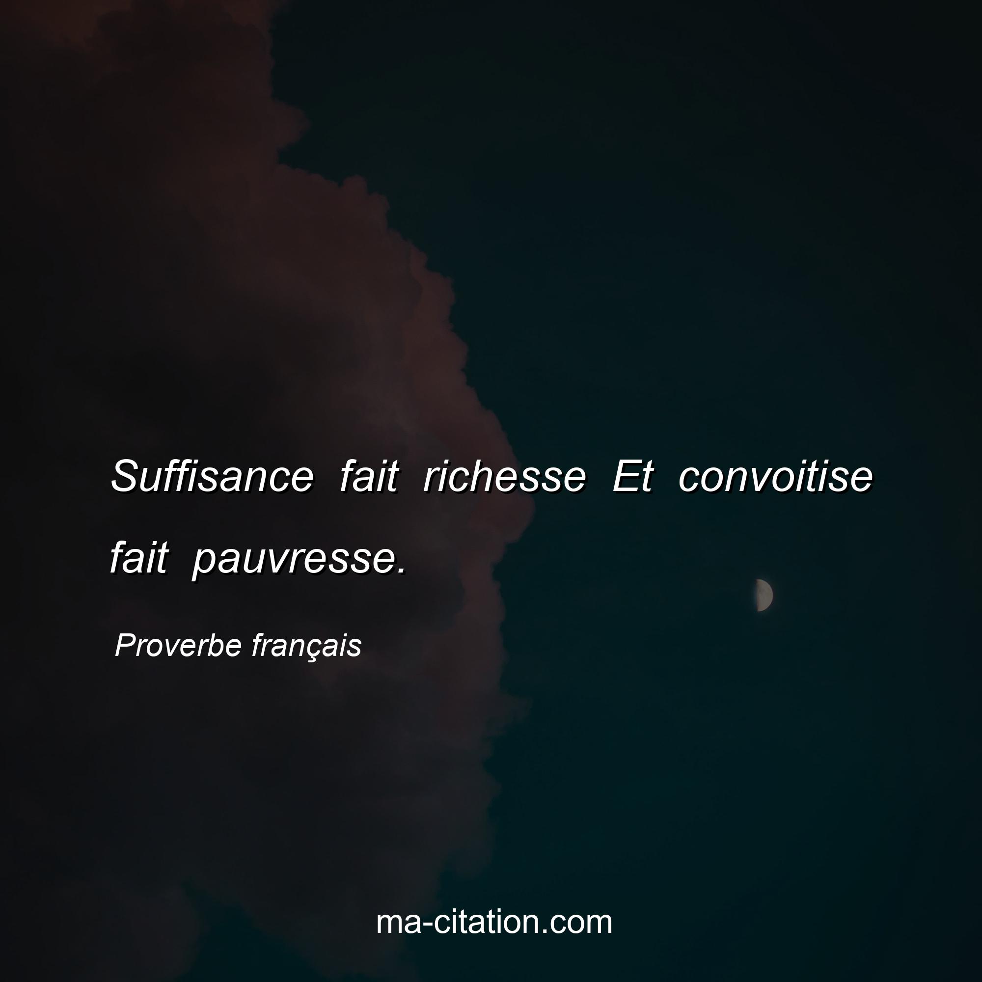 Suffisance fait richesse Et convoitise fait pauvresse.