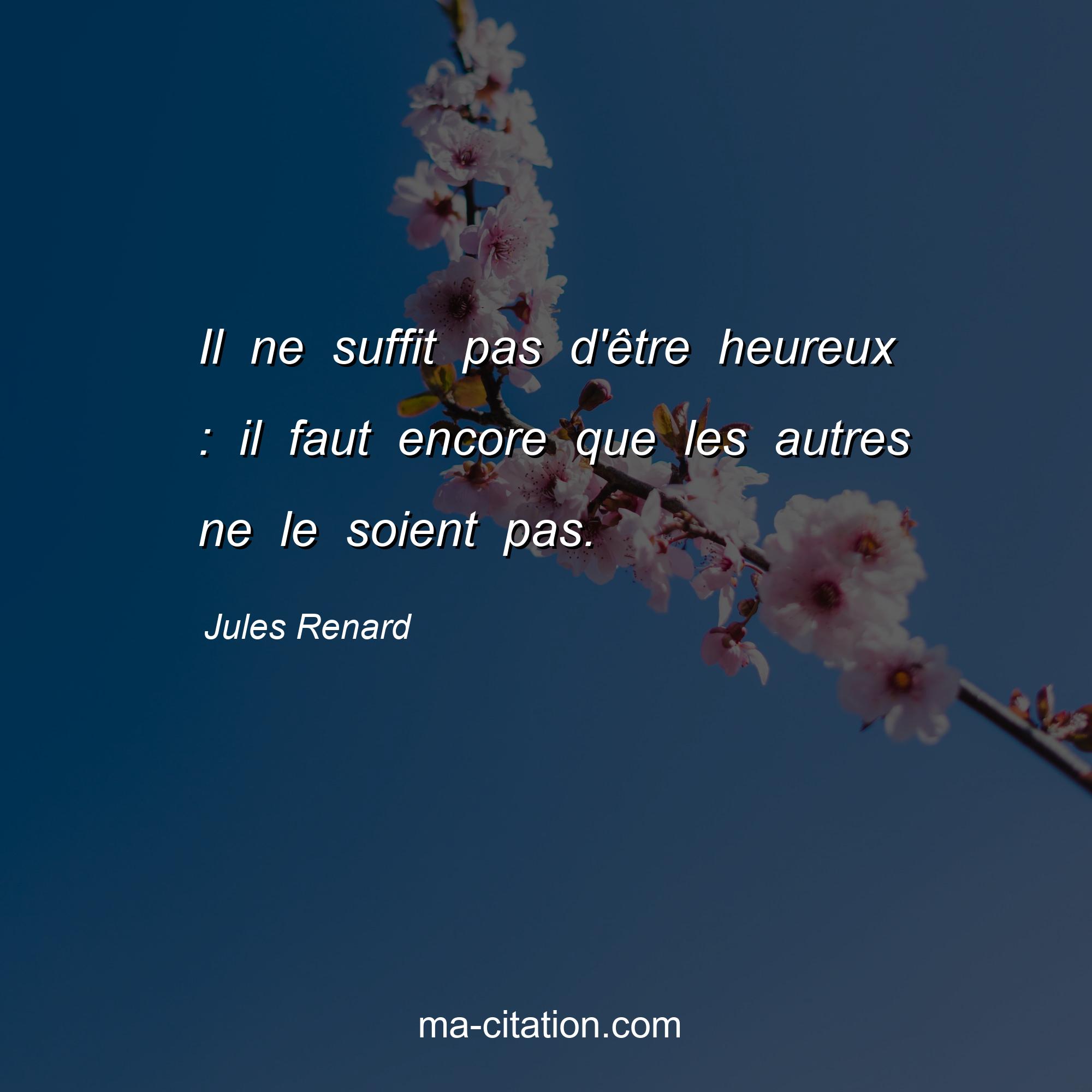Citation sur la vie de Jules Renard :Il ne suffit pas d'être heureux : il faut encore que les autres ne le soient pas.