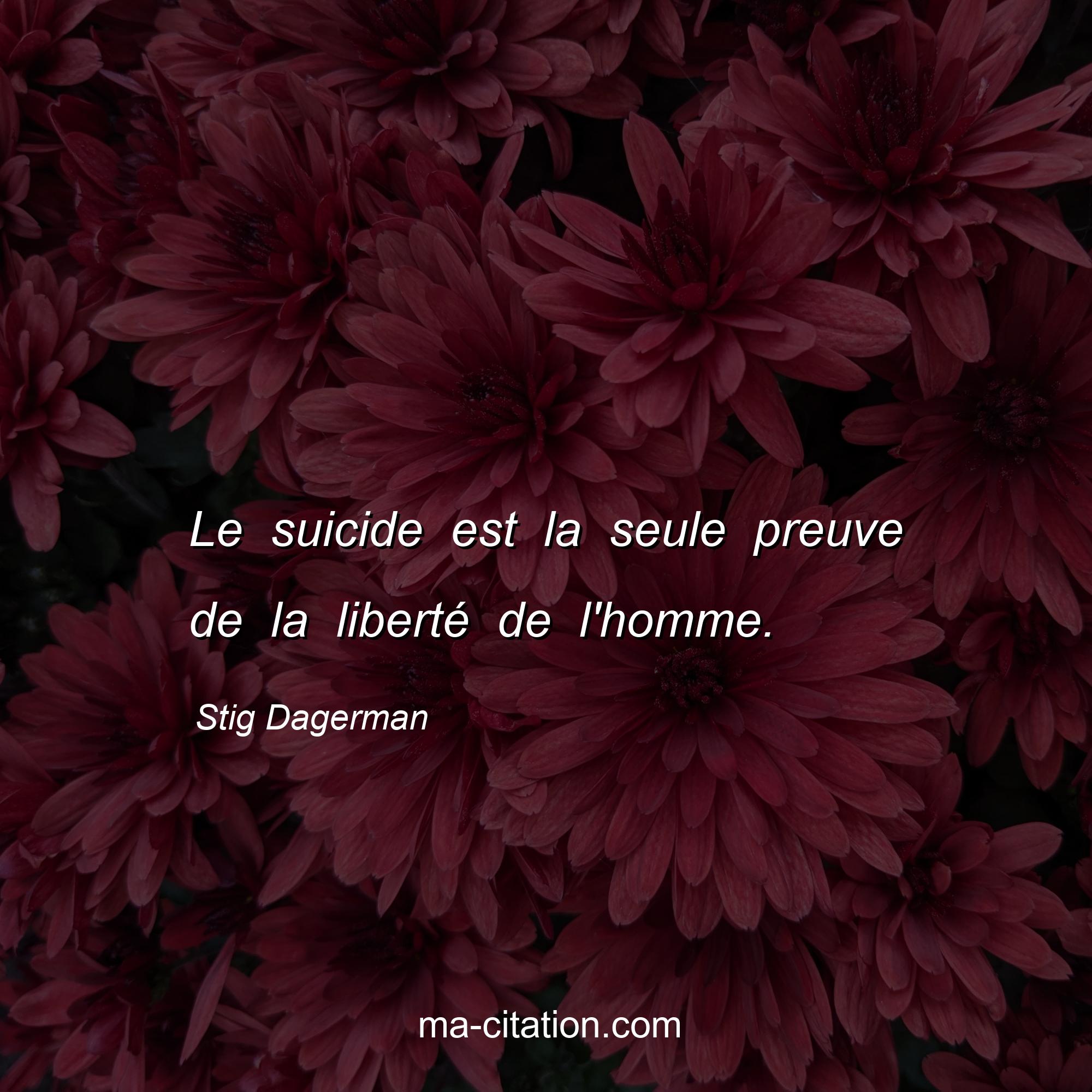 Citation sur la vie de Stig Dagerman :Le suicide est la seule preuve de la liberté de l'homme.