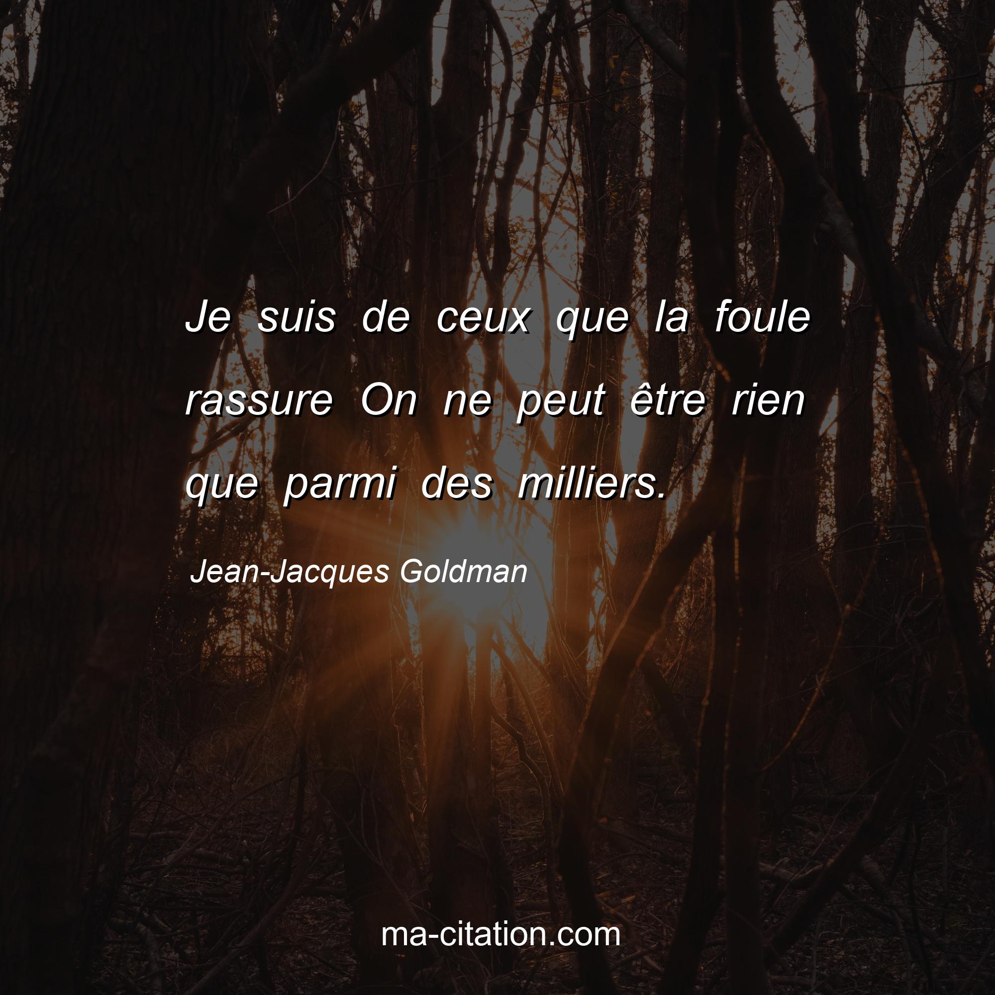 Citation sur la vie de Jean-Jacques Goldman :Je suis de ceux que la foule rassure On ne peut être rien que parmi des milliers.