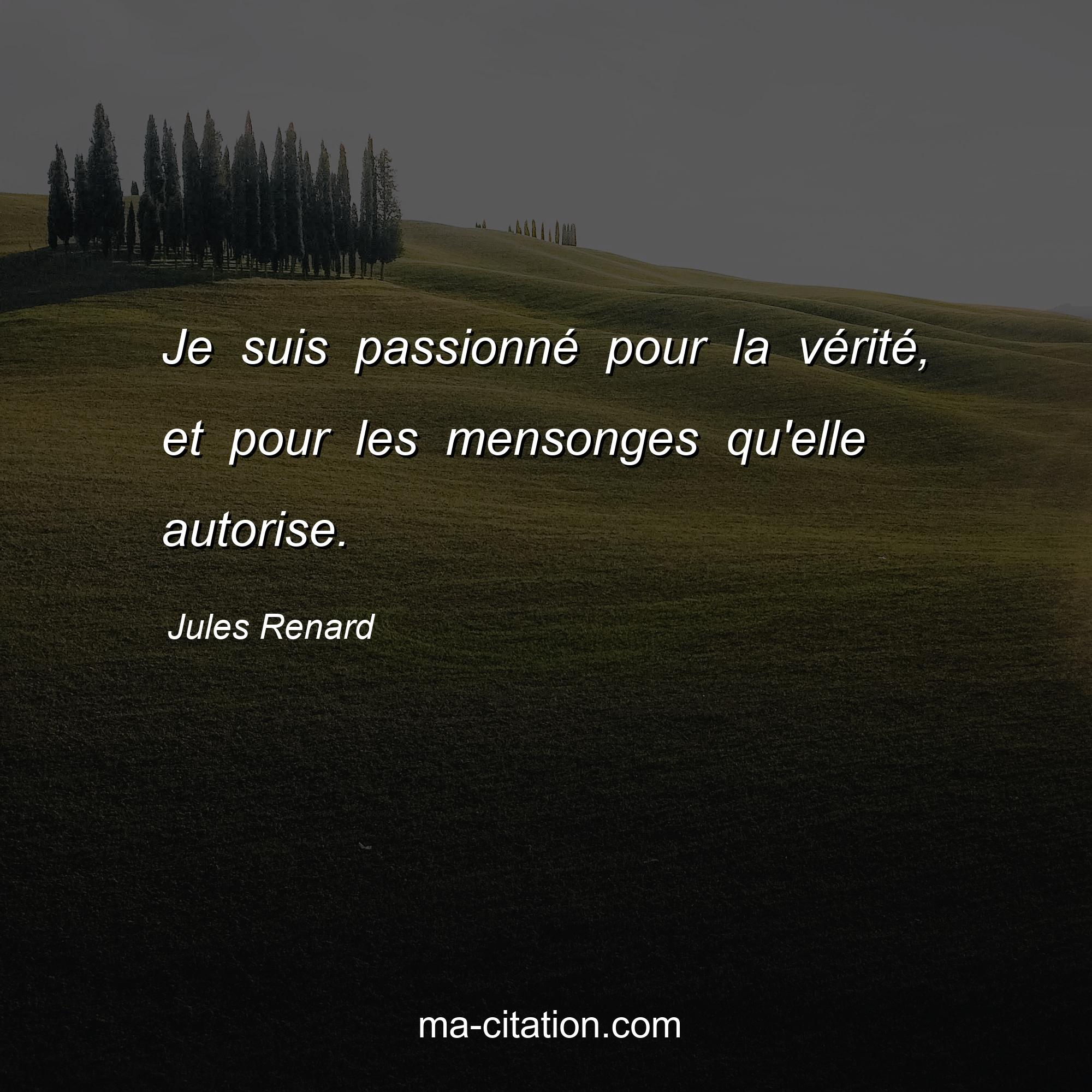 Citation sur la vie de Jules Renard :Je suis passionné pour la vérité, et pour les mensonges qu'elle autorise.