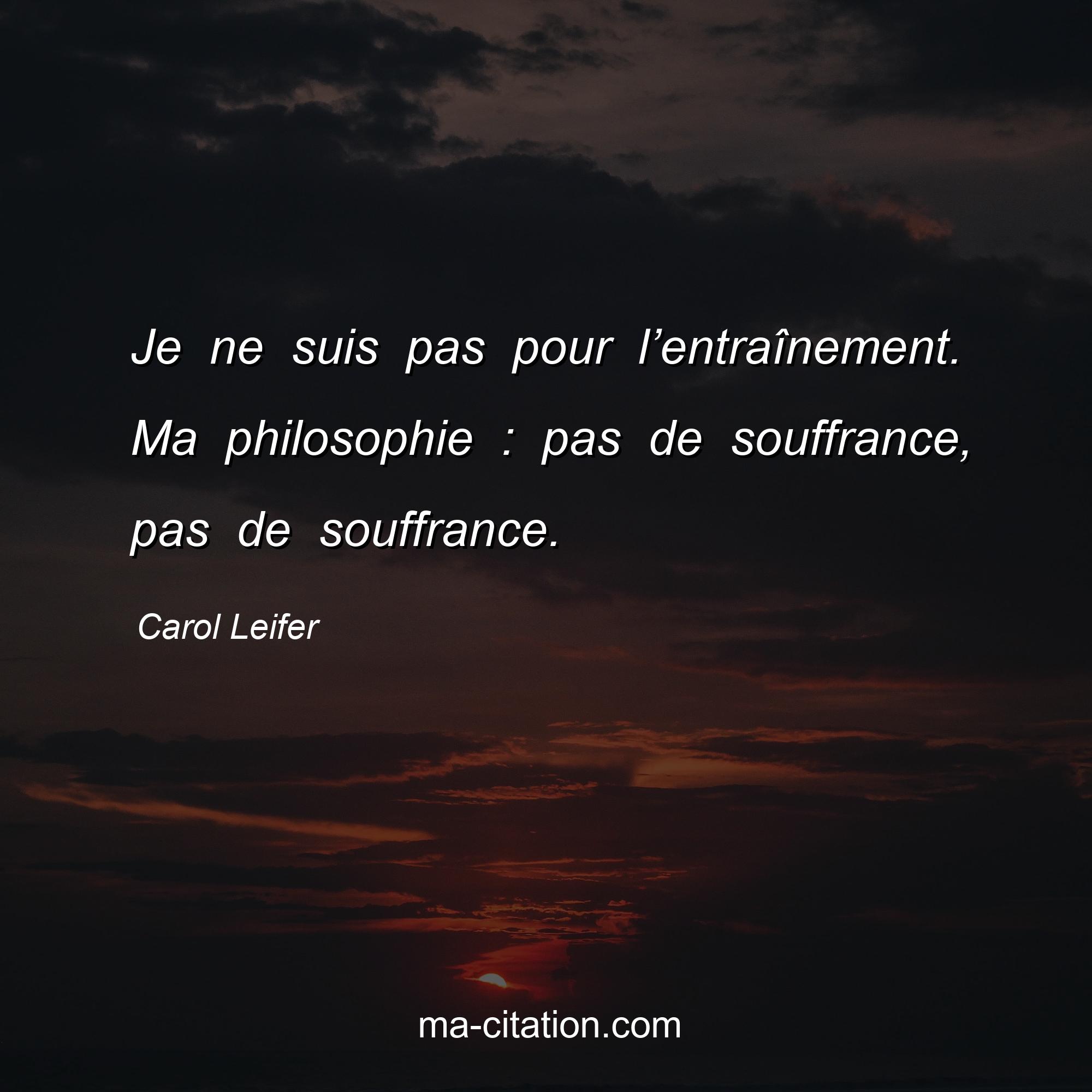 Citation sur la vie de Carol Leifer :Je ne suis pas pour l’entraînement. Ma philosophie : pas de souffrance, pas de souffrance.