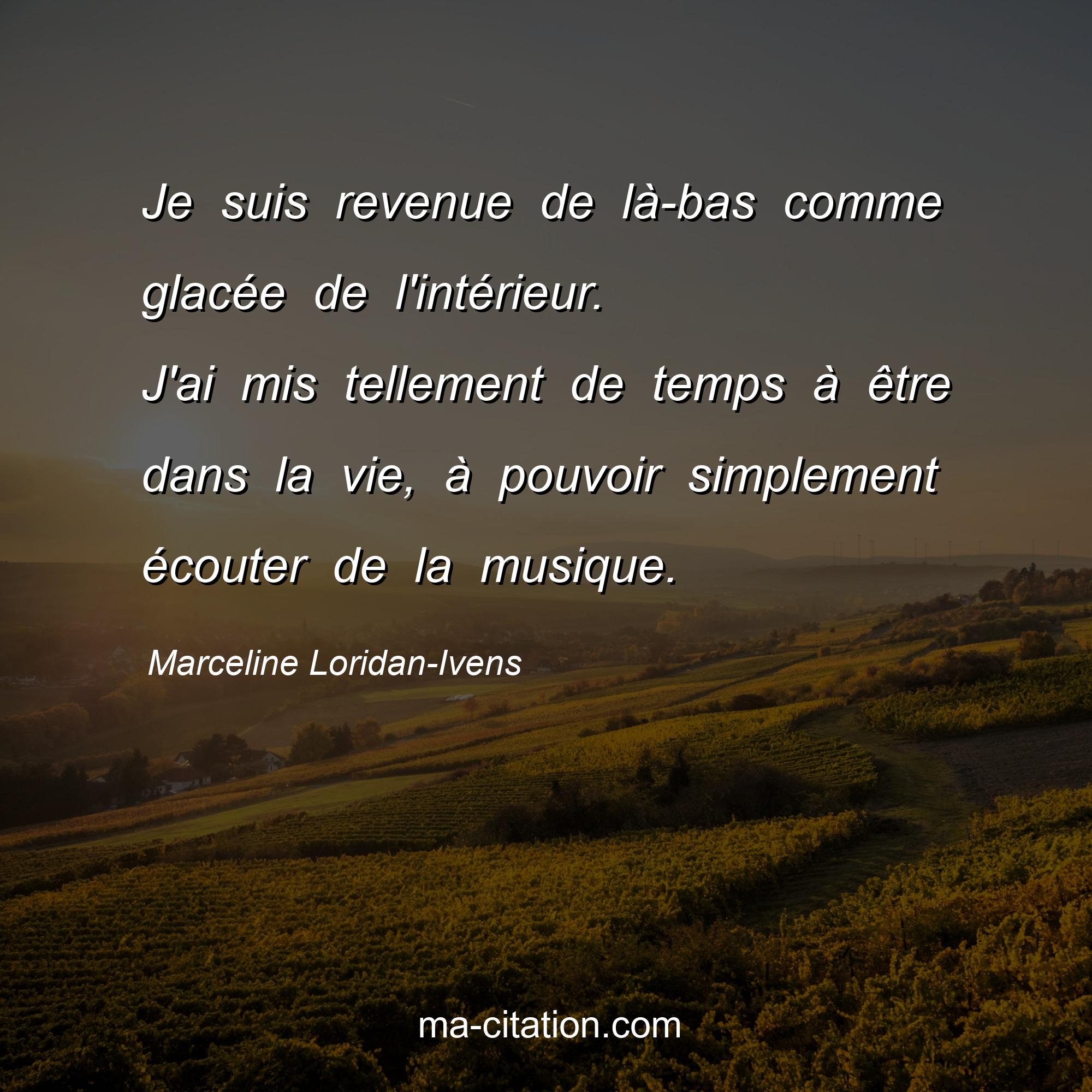 Marceline Loridan-Ivens est l'auteur de la citation sur la vie "Je suis revenue de là -bas comme glacée de l'intérieur. J'ai mis tellement de temps à être dans la vie, à pouvoir simplement écouter de la musique.".