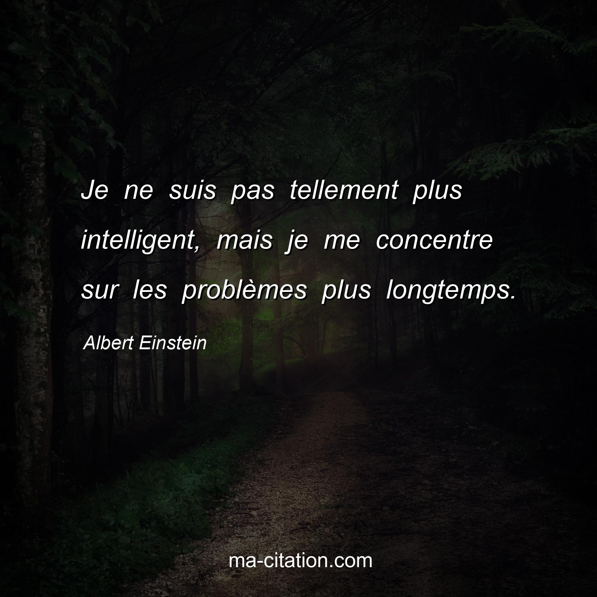 Citation sur la vie d'Albert Einstein :Je ne suis pas tellement plus intelligent, mais je me concentre sur les problèmes plus longtemps.