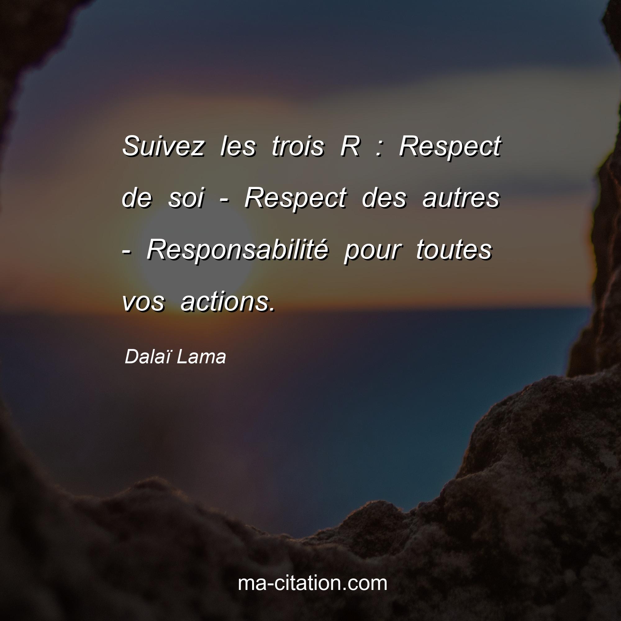 Citation sur la vie de Dalaï Lama :Suivez les trois R : Respect de soi - Respect des autres - Responsabilité pour toutes vos actions.