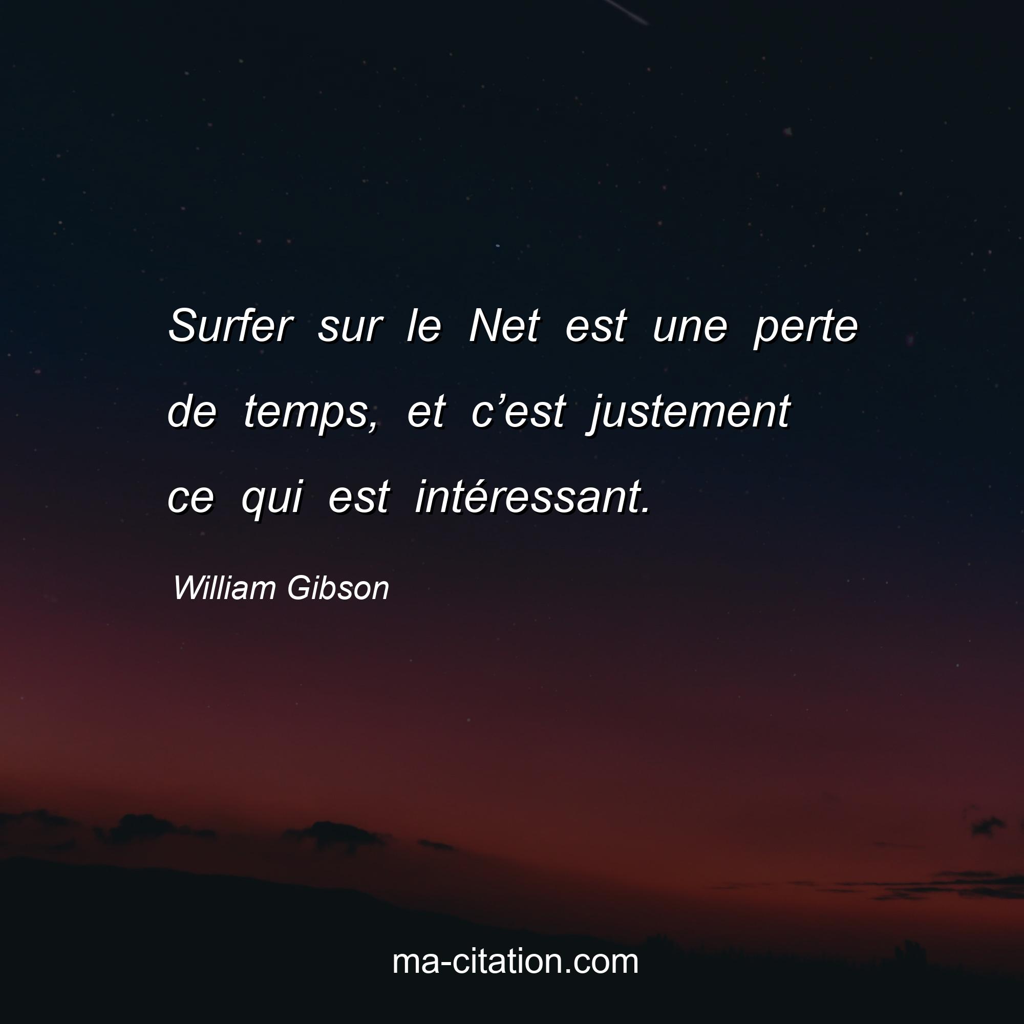 Citation sur la vie de William Gibson :Surfer sur le Net est une perte de temps, et c’est justement ce qui est intéressant.
