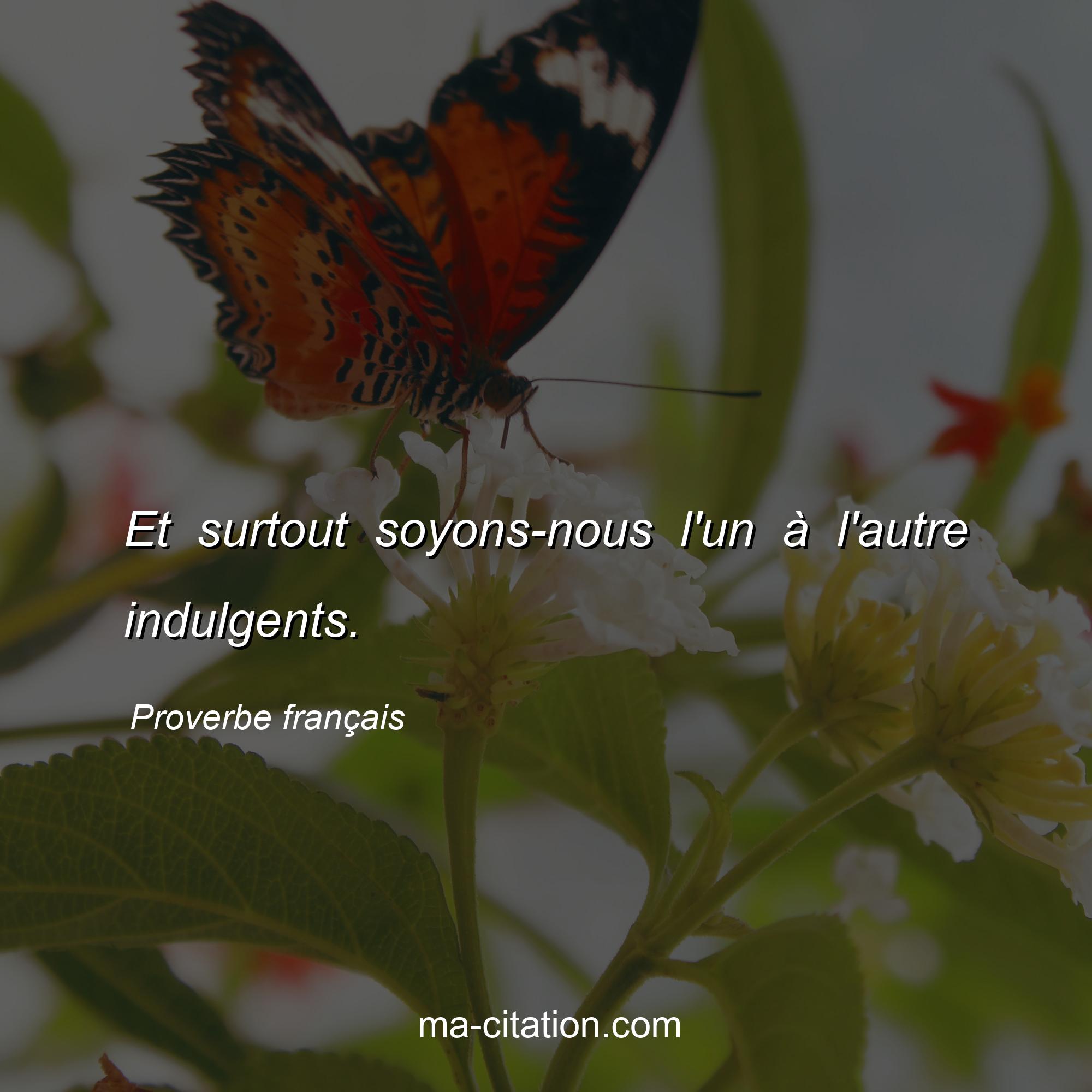Et surtout soyons-nous l'un à l'autre indulgents.