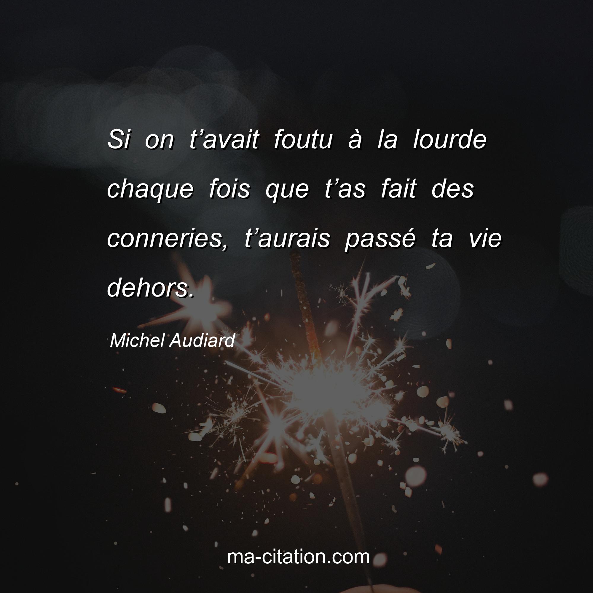 Citation sur la vie de Michel Audiard :Si on t’avait foutu à la lourde chaque fois que t’as fait des conneries, t’aurais passé ta vie dehors.