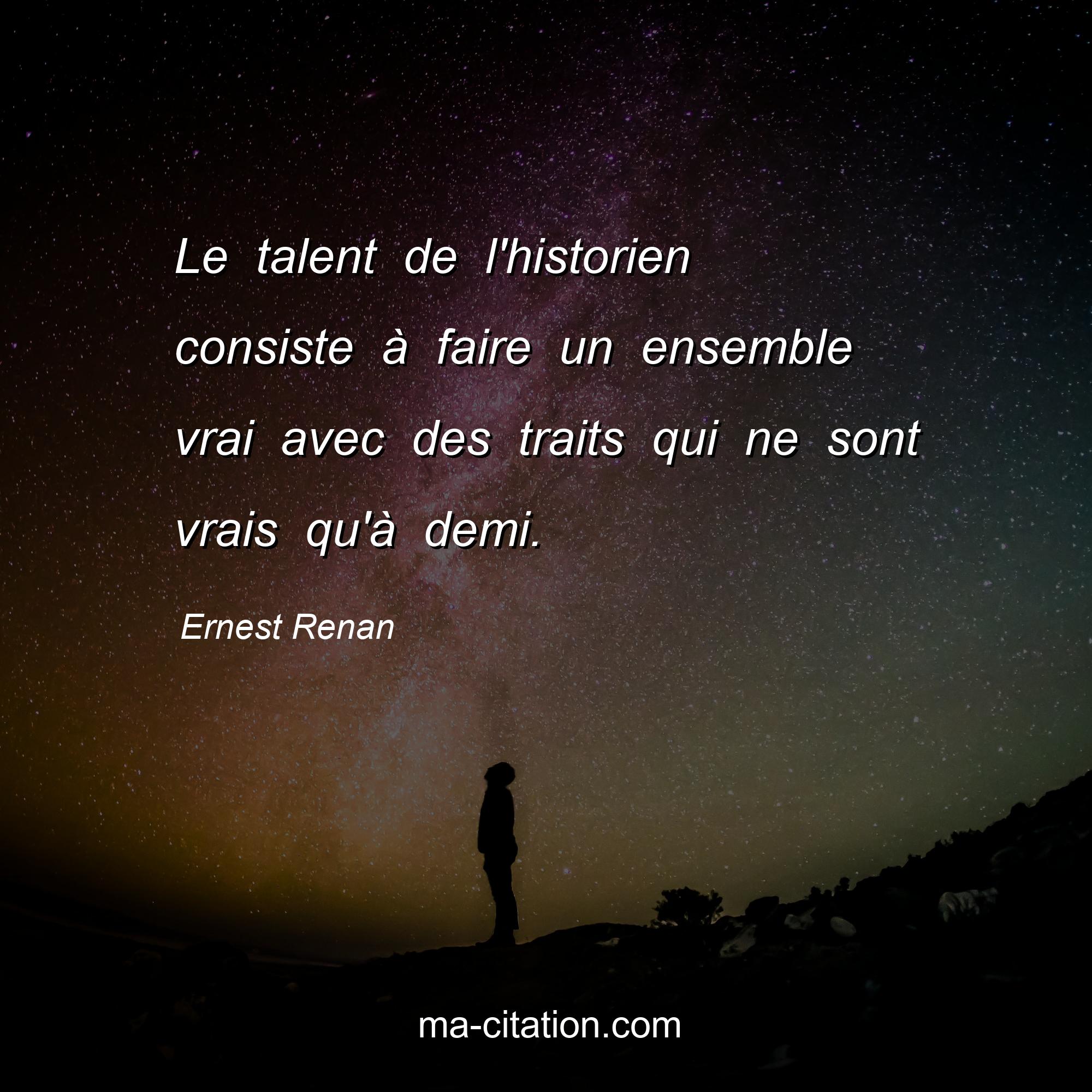 Citation sur la vie d'Ernest Renan :Le talent de l'historien consiste à faire un ensemble vrai avec des traits qui ne sont vrais qu'à demi.