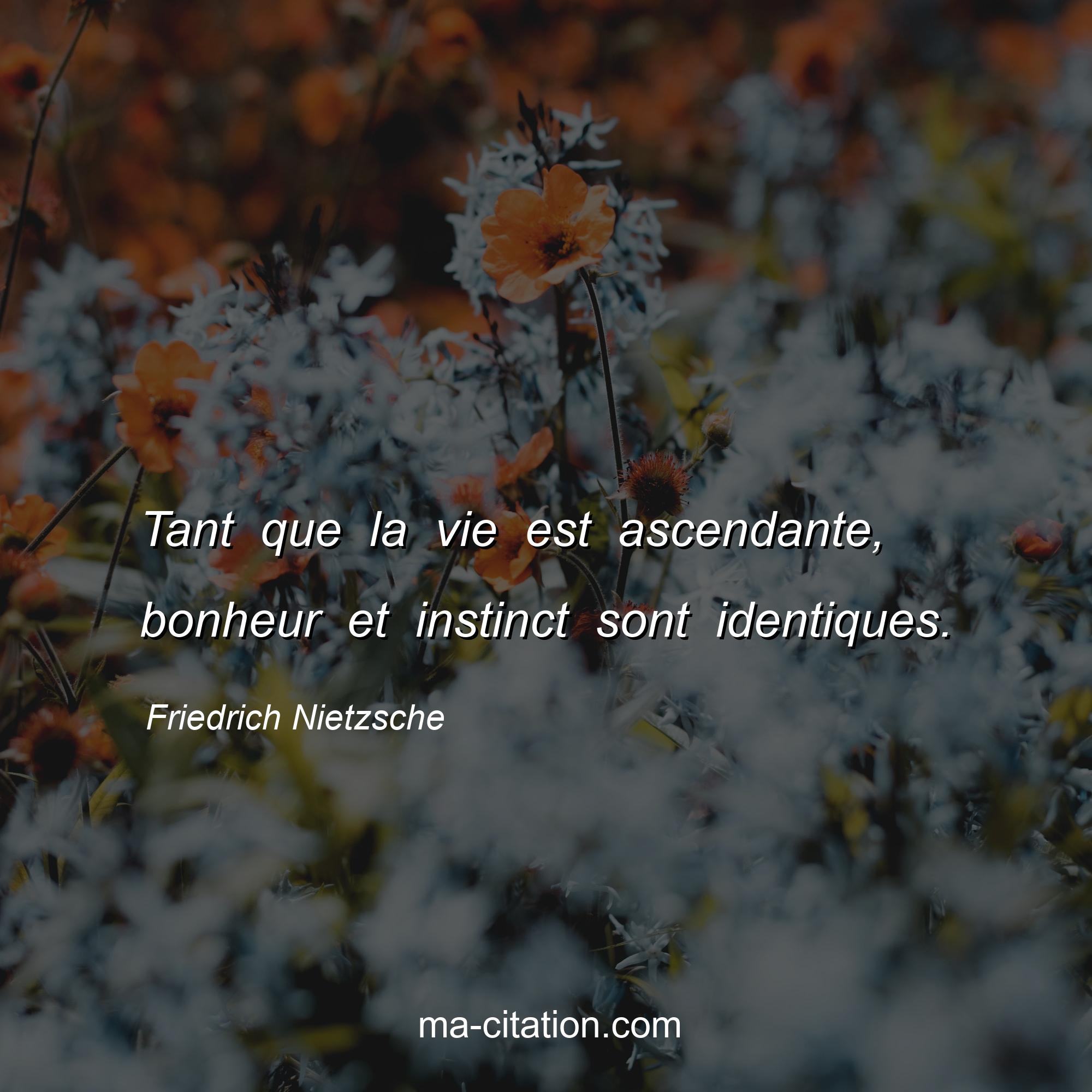 Citation sur la vie de Friedrich Nietzsche :Tant que la vie est ascendante, bonheur et instinct sont identiques.