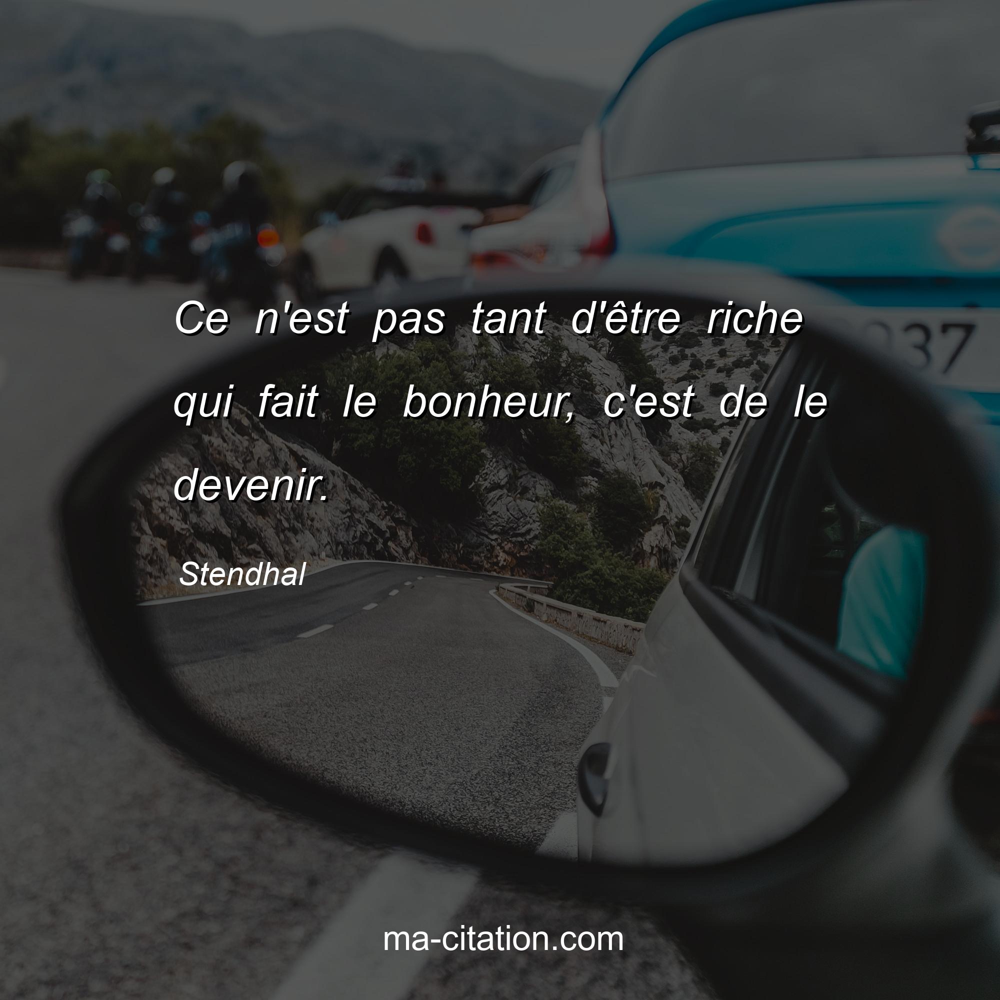 Citation sur la vie de Stendhal :Ce n'est pas tant d'être riche qui fait le bonheur, c'est de le devenir.