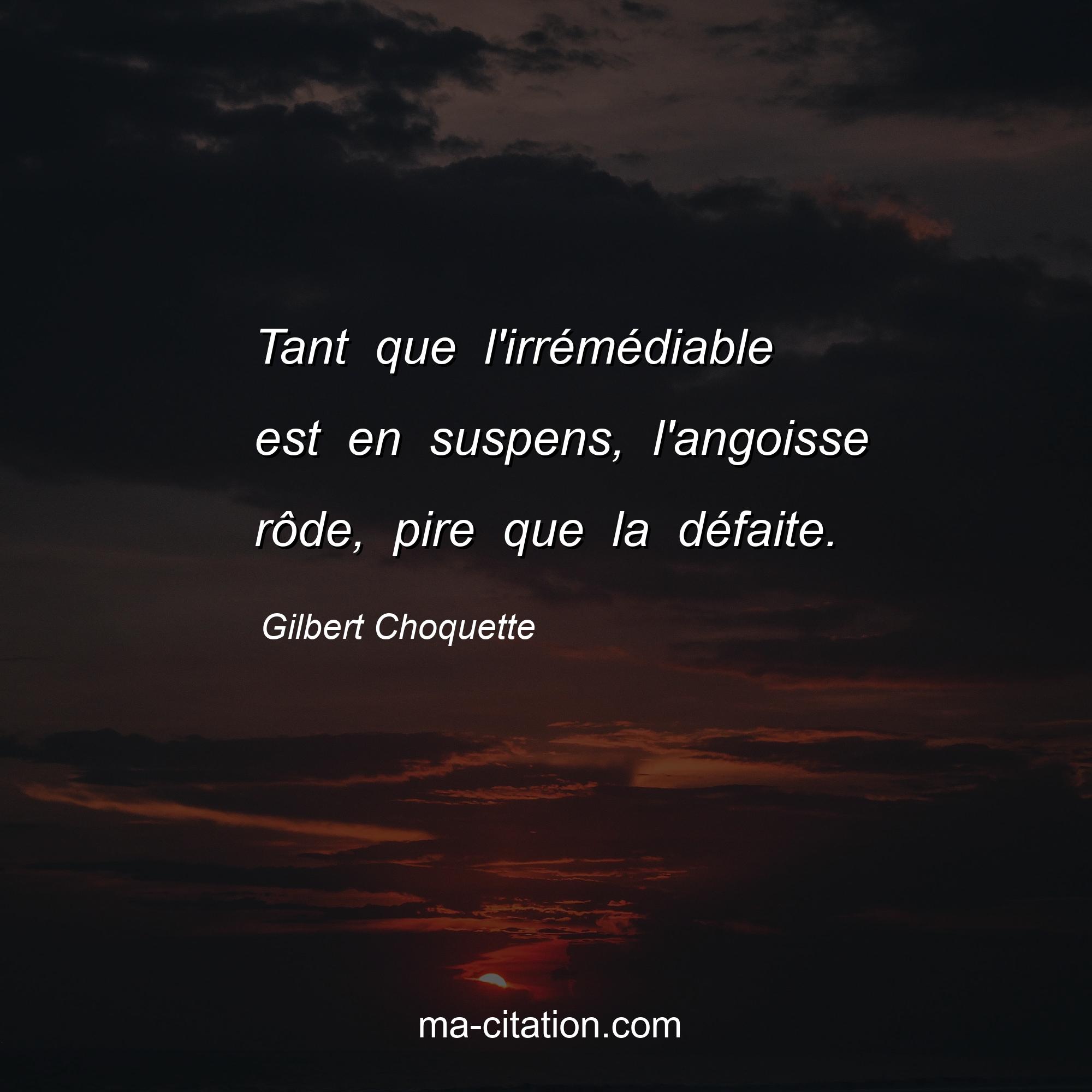 Citation sur la vie de Gilbert Choquette :Tant que l'irrémédiable est en suspens, l'angoisse rôde, pire que la défaite.