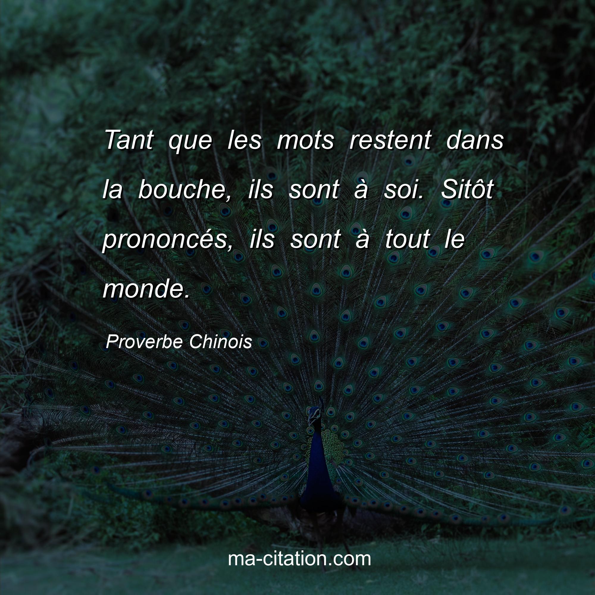 Proverbe Chinois sur la vie :Tant que les mots restent dans la bouche, ils sont à soi. Sitôt prononcés, ils sont à tout le monde.