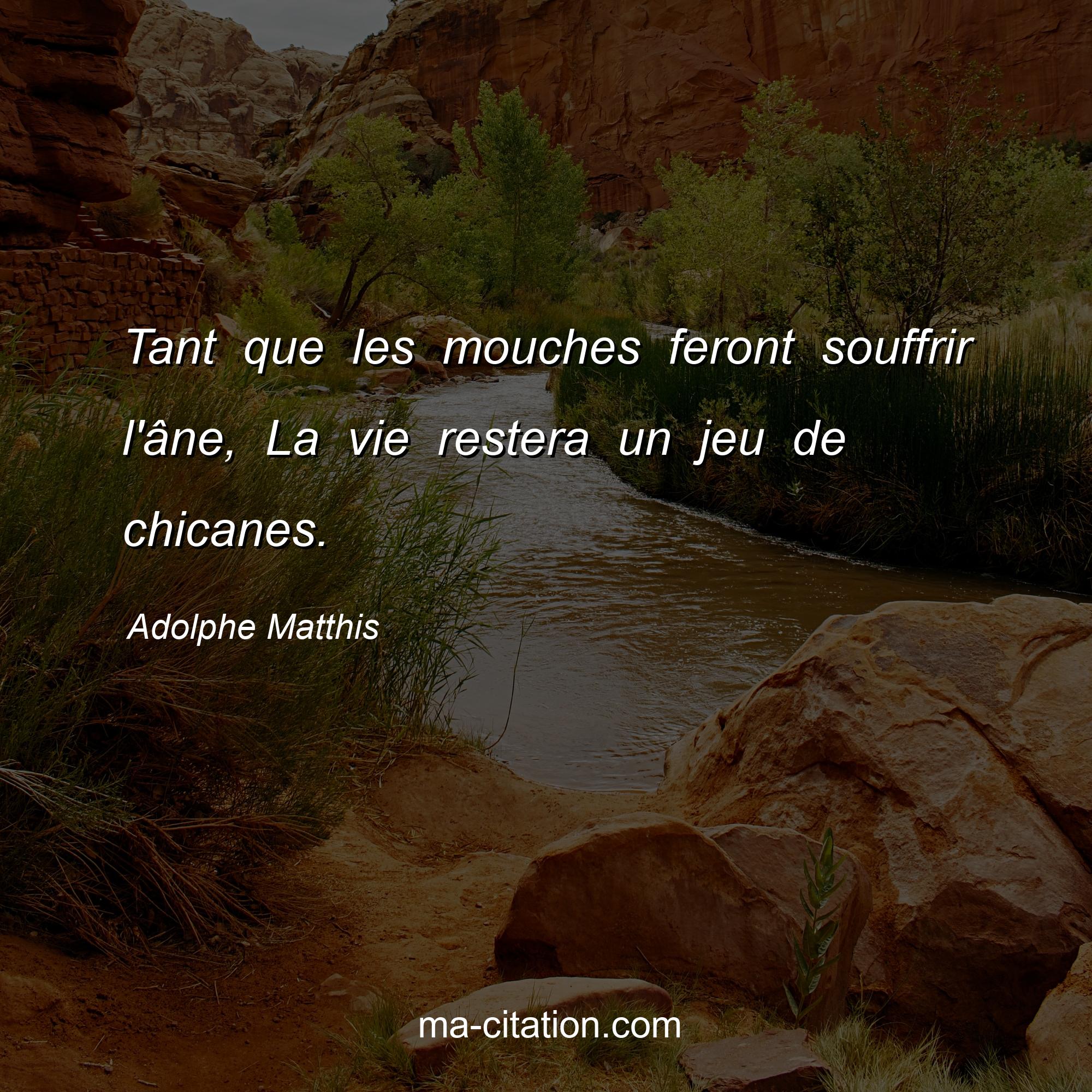 Citation sur la vie d'Adolphe Matthis :Tant que les mouches feront souffrir l'âne, La vie restera un jeu de chicanes.