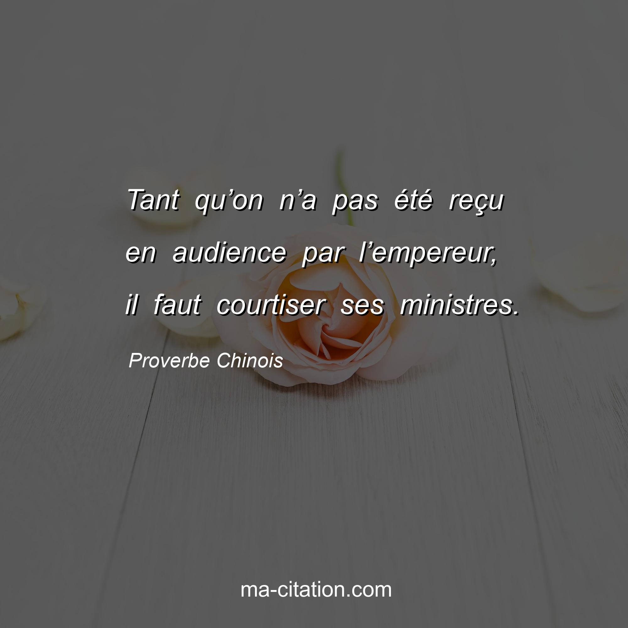 Proverbe Chinois sur la vie :Tant qu’on n’a pas été reçu en audience par l’empereur, il faut courtiser ses ministres.