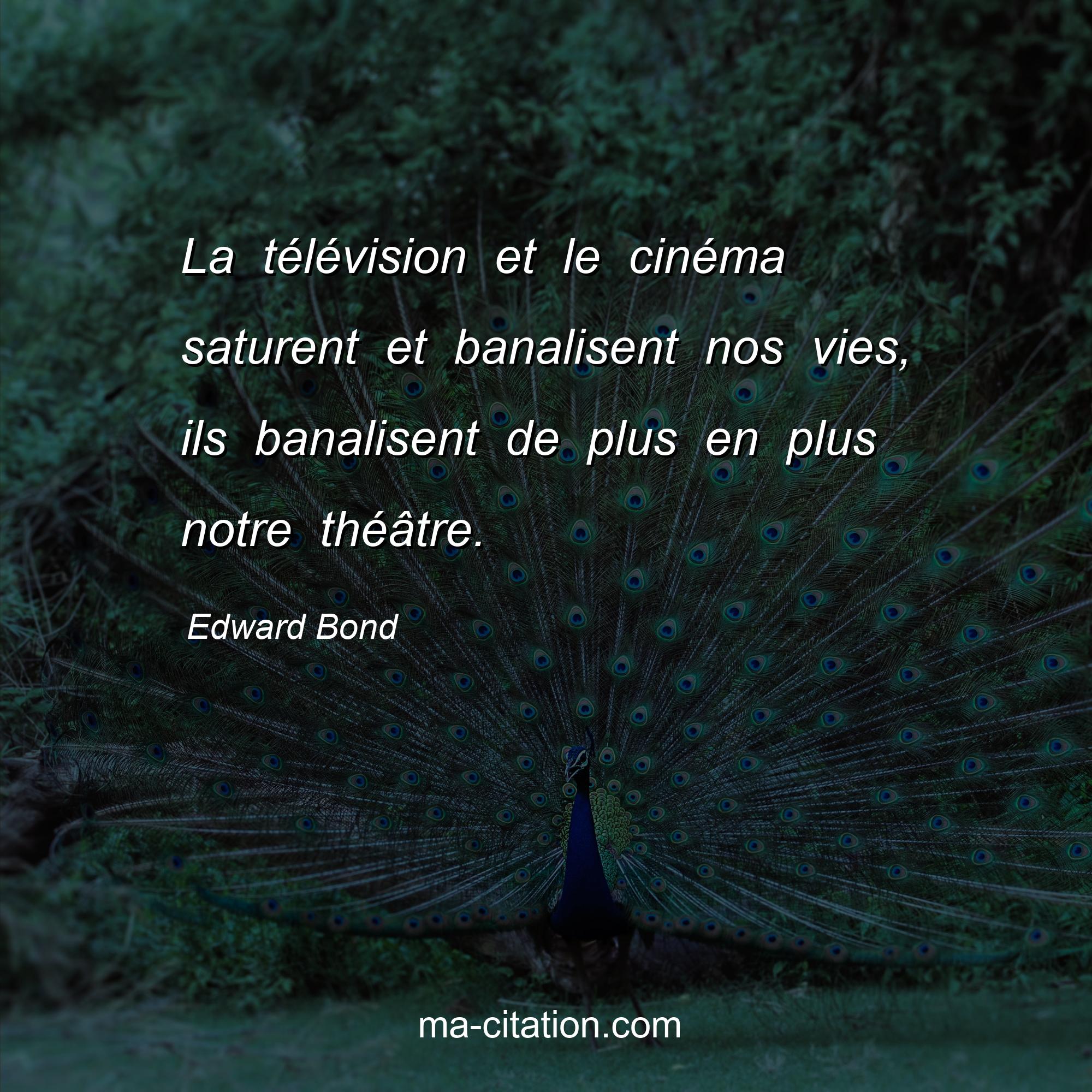 Citation sur la vie d'Edward Bond :La télévision et le cinéma saturent et banalisent nos vies, ils banalisent de plus en plus notre théâtre.