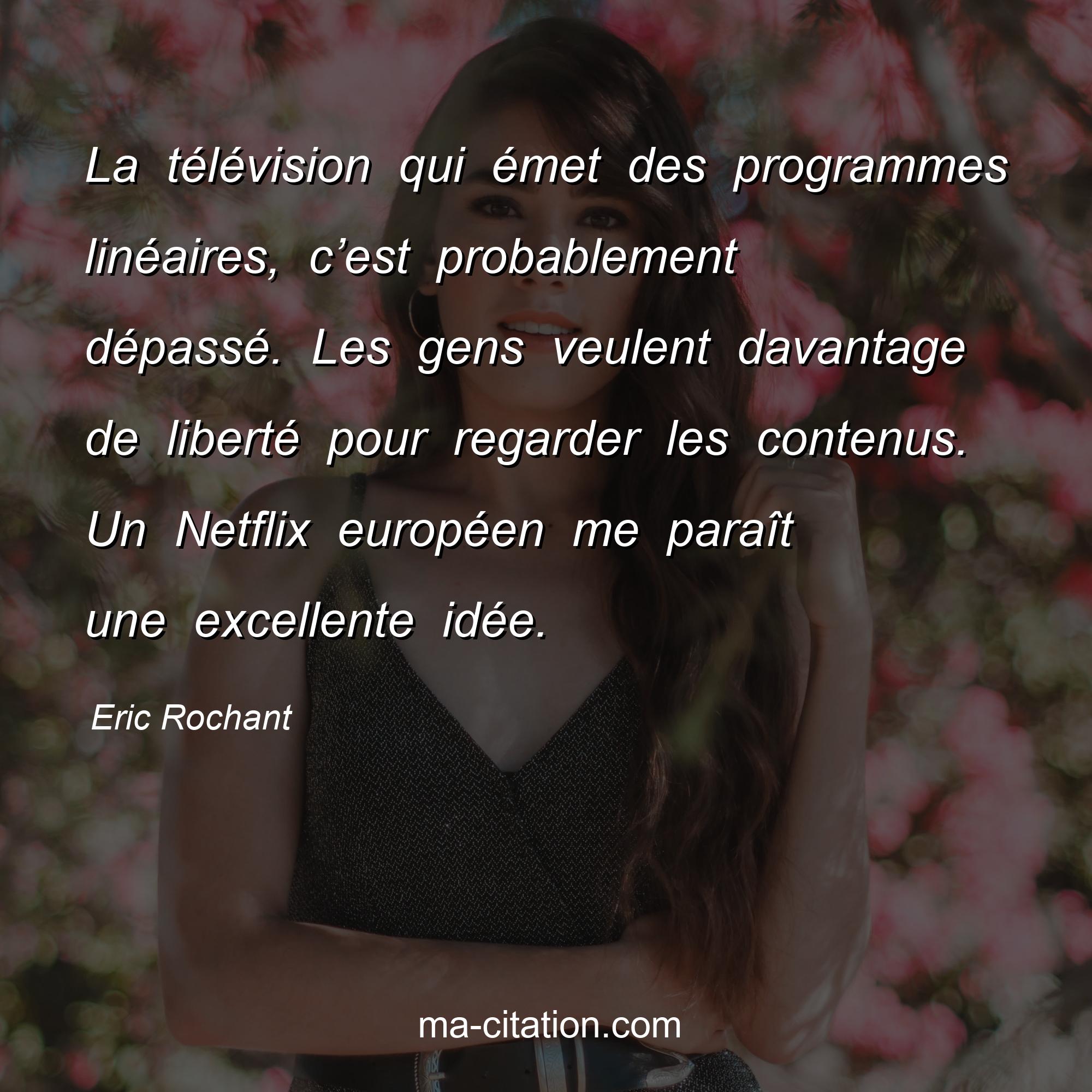 Citation sur la vie d'Eric Rochant :La télévision qui émet des programmes linéaires, c’est probablement dépassé. Les gens veulent davantage de liberté pour regarder les contenus. Un Netflix européen me paraît une excellente idée.