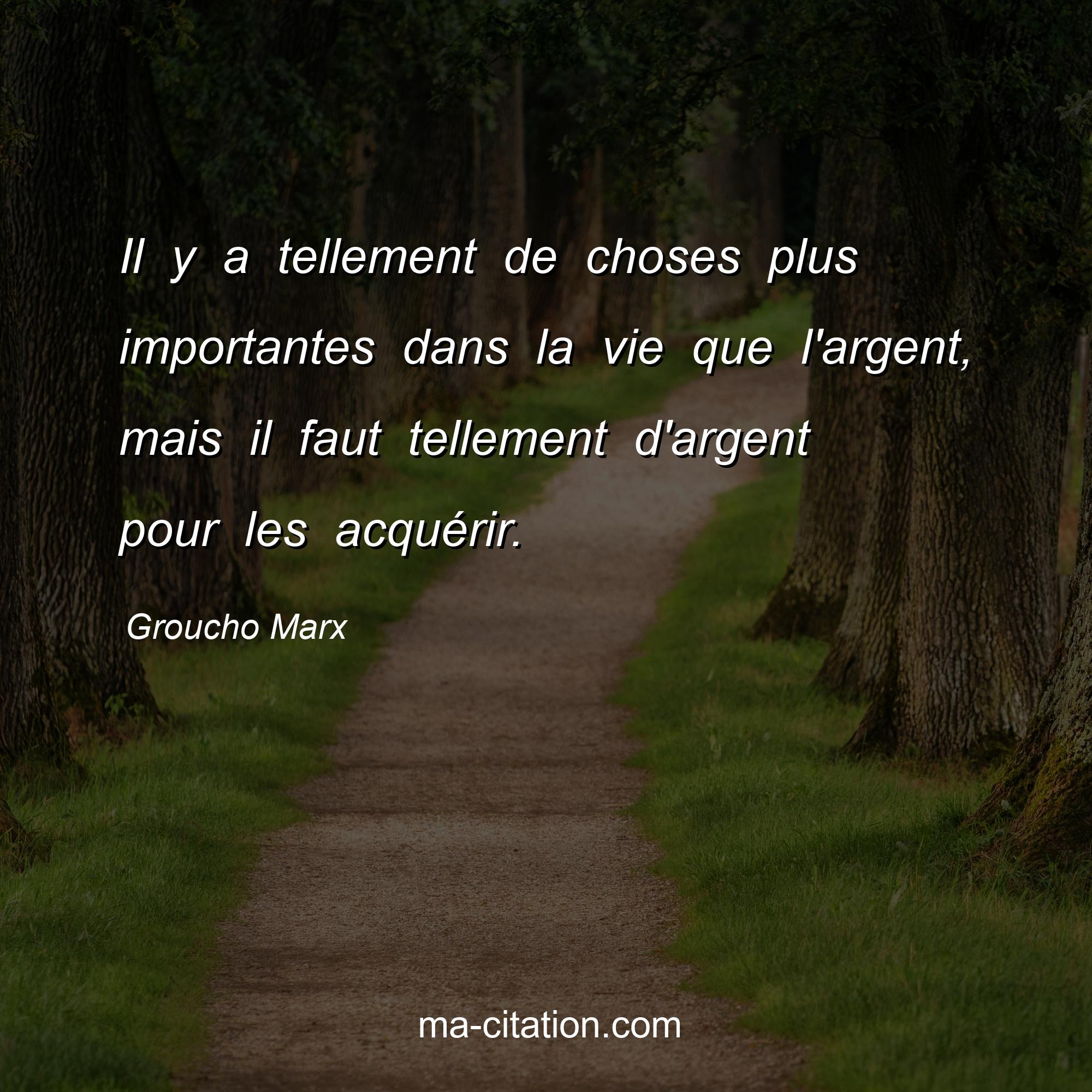 Citation sur la vie de Groucho Marx :Il y a tellement de choses plus importantes dans la vie que l'argent, mais il faut tellement d'argent pour les acquérir.