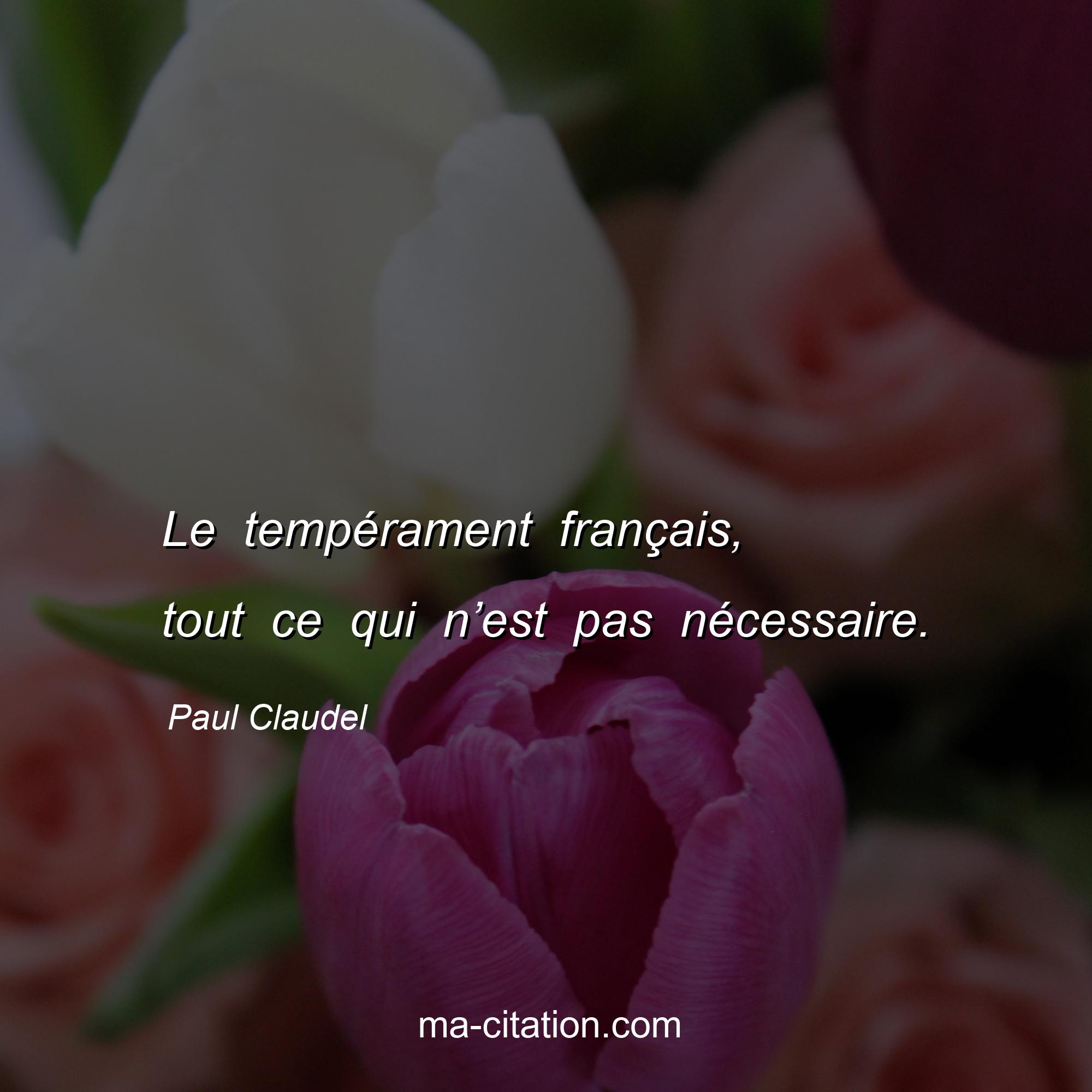 Citation sur la vie de Paul Claudel :Le tempérament français, tout ce qui n’est pas nécessaire.