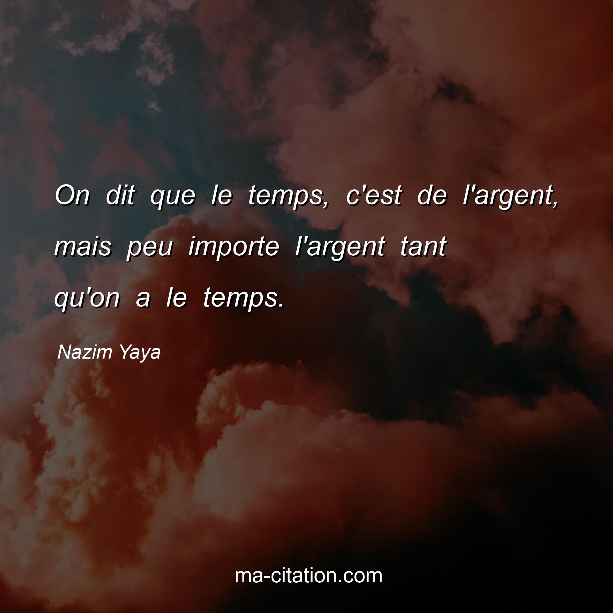 Nazim Yaya est l'auteur de la citation sur la vie "On dit que le temps, c'est de l'argent, mais peu importe l'argent tant qu'on a le temps.".