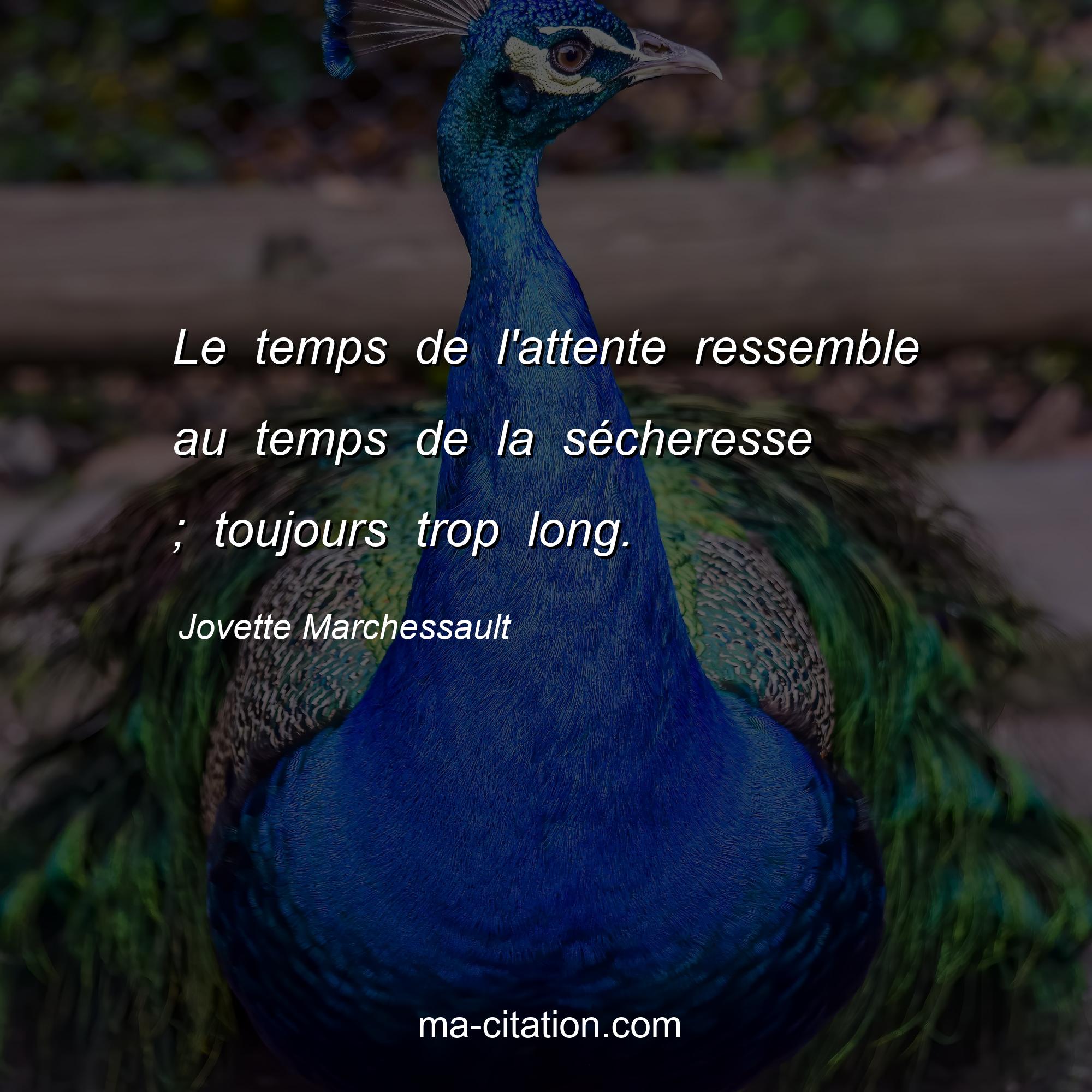 Citation sur la vie de Jovette Marchessault :Le temps de l'attente ressemble au temps de la sécheresse ; toujours trop long.