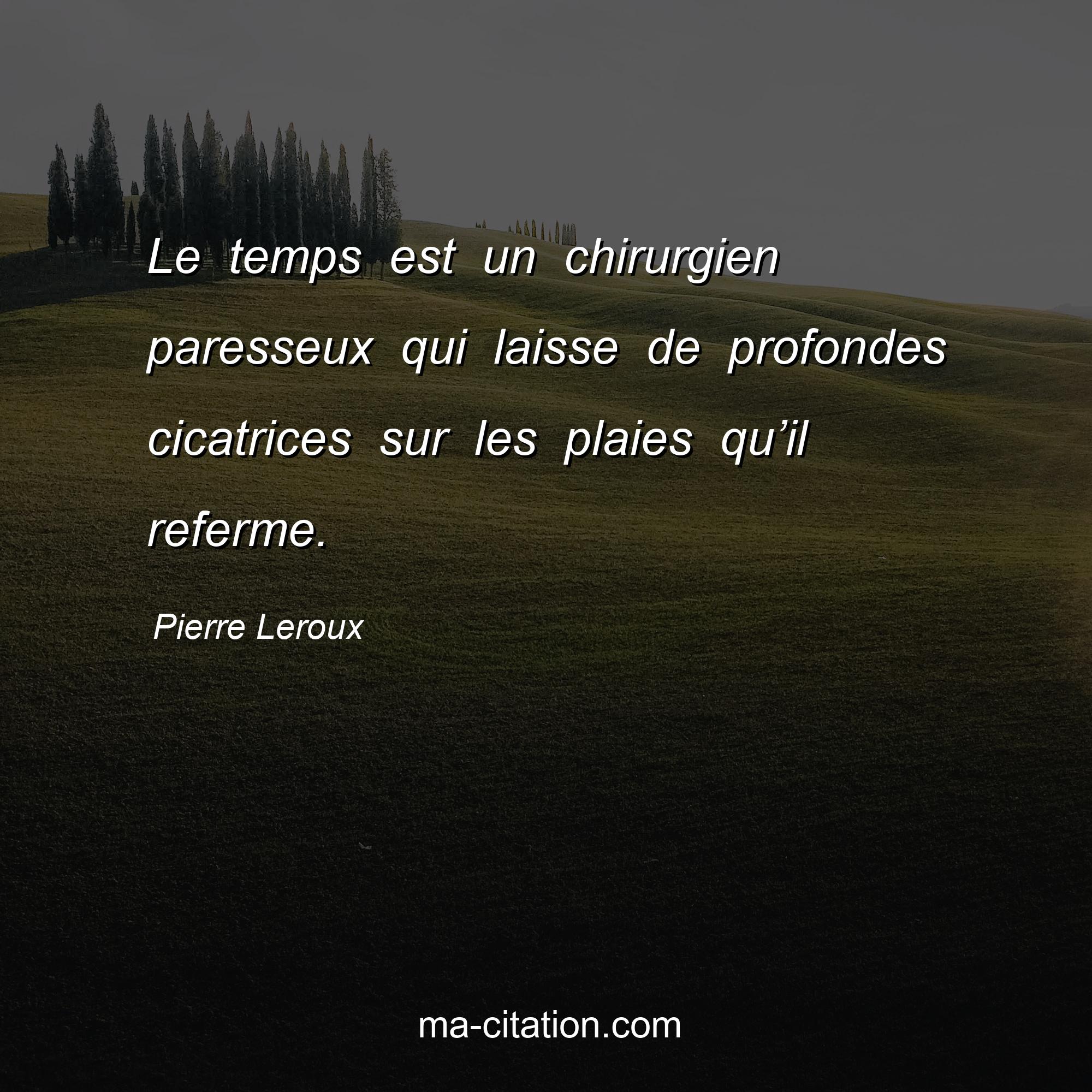 Pierre Leroux est l'auteur de la citation sur la vie "Le temps est un chirurgien paresseux qui laisse de profondes cicatrices sur les plaies qu’il referme.".