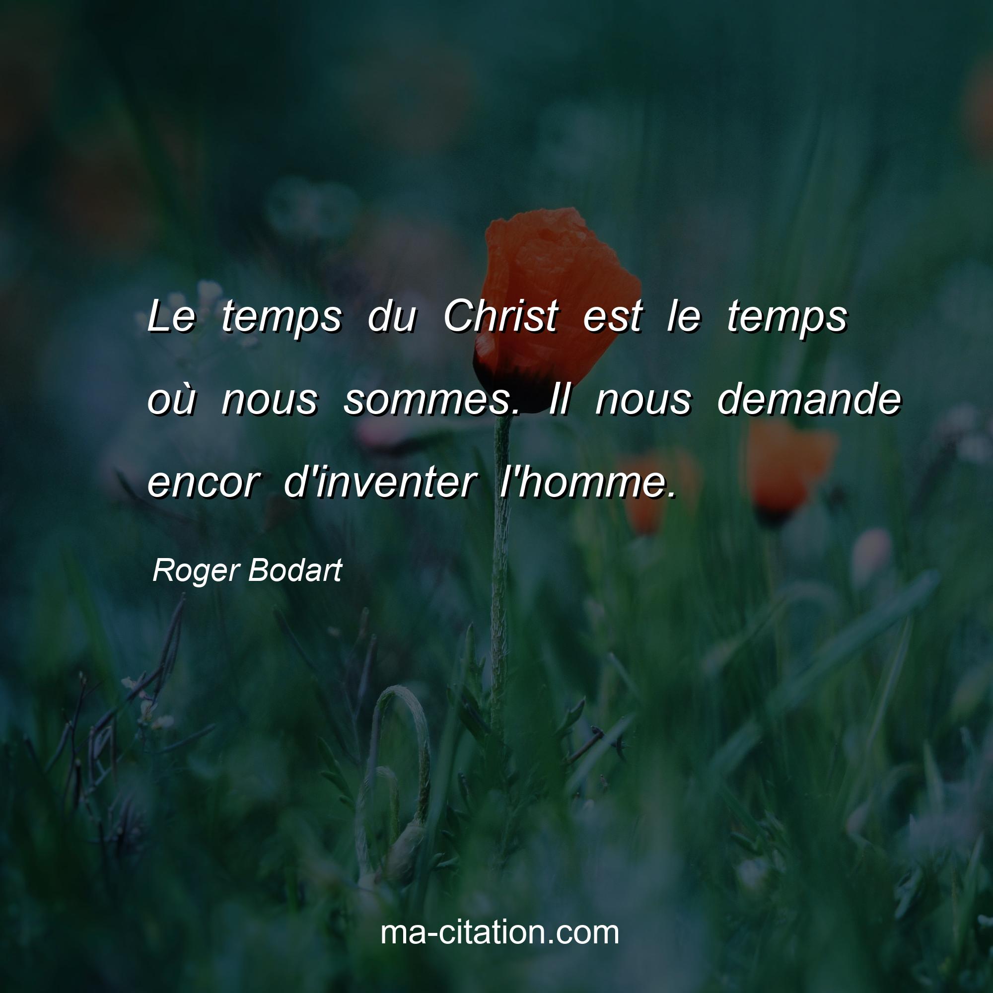 Citation sur la vie de Roger Bodart :Le temps du Christ est le temps où nous sommes. Il nous demande encor d'inventer l'homme.