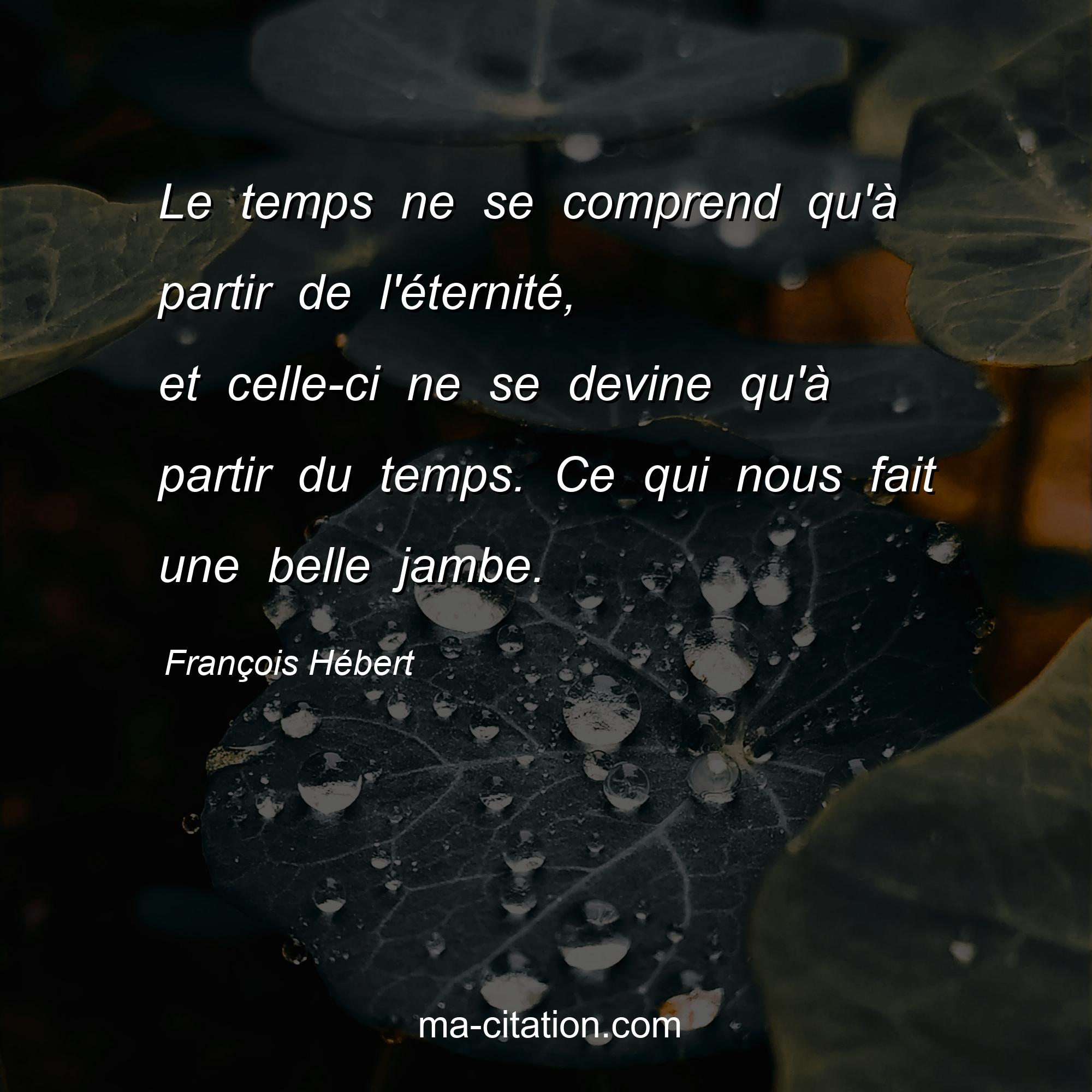 Citation sur la vie de François Hébert :Le temps ne se comprend qu'à partir de l'éternité, et celle-ci ne se devine qu'à partir du temps. Ce qui nous fait une belle jambe.