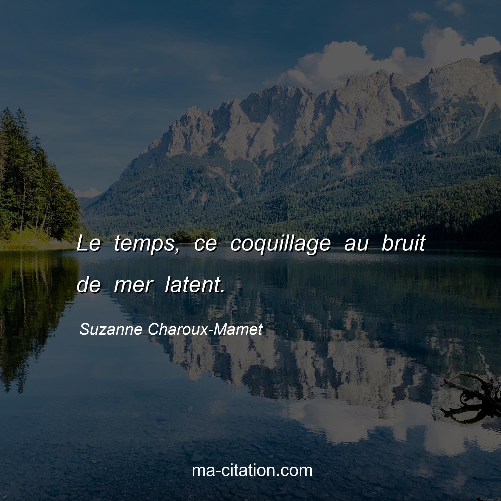 Suzanne Charoux-Mamet est l'auteur de la citation sur la vie "Le temps, ce coquillage au bruit de mer latent.".