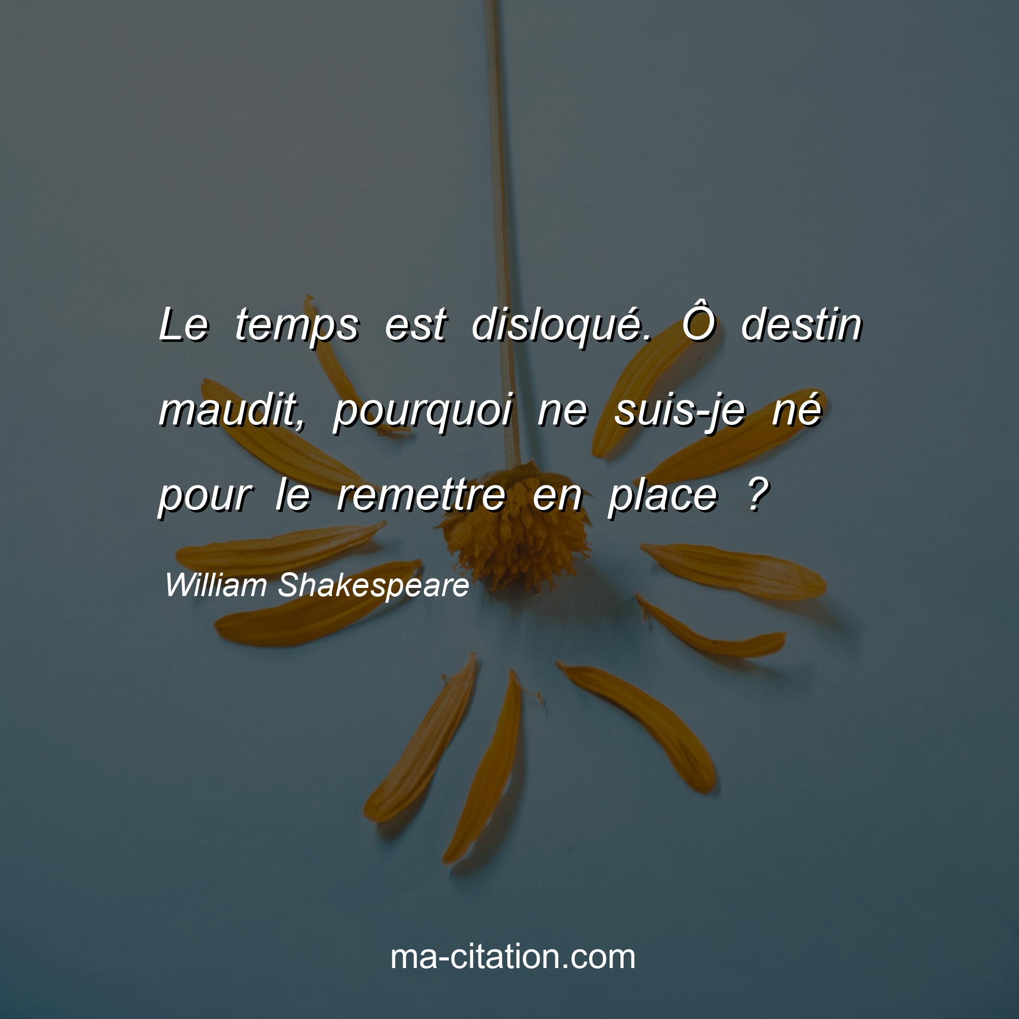 Citation sur la vie de William Shakespeare :Le temps est disloqué. Ô destin maudit, pourquoi ne suis-je né pour le remettre en place ?