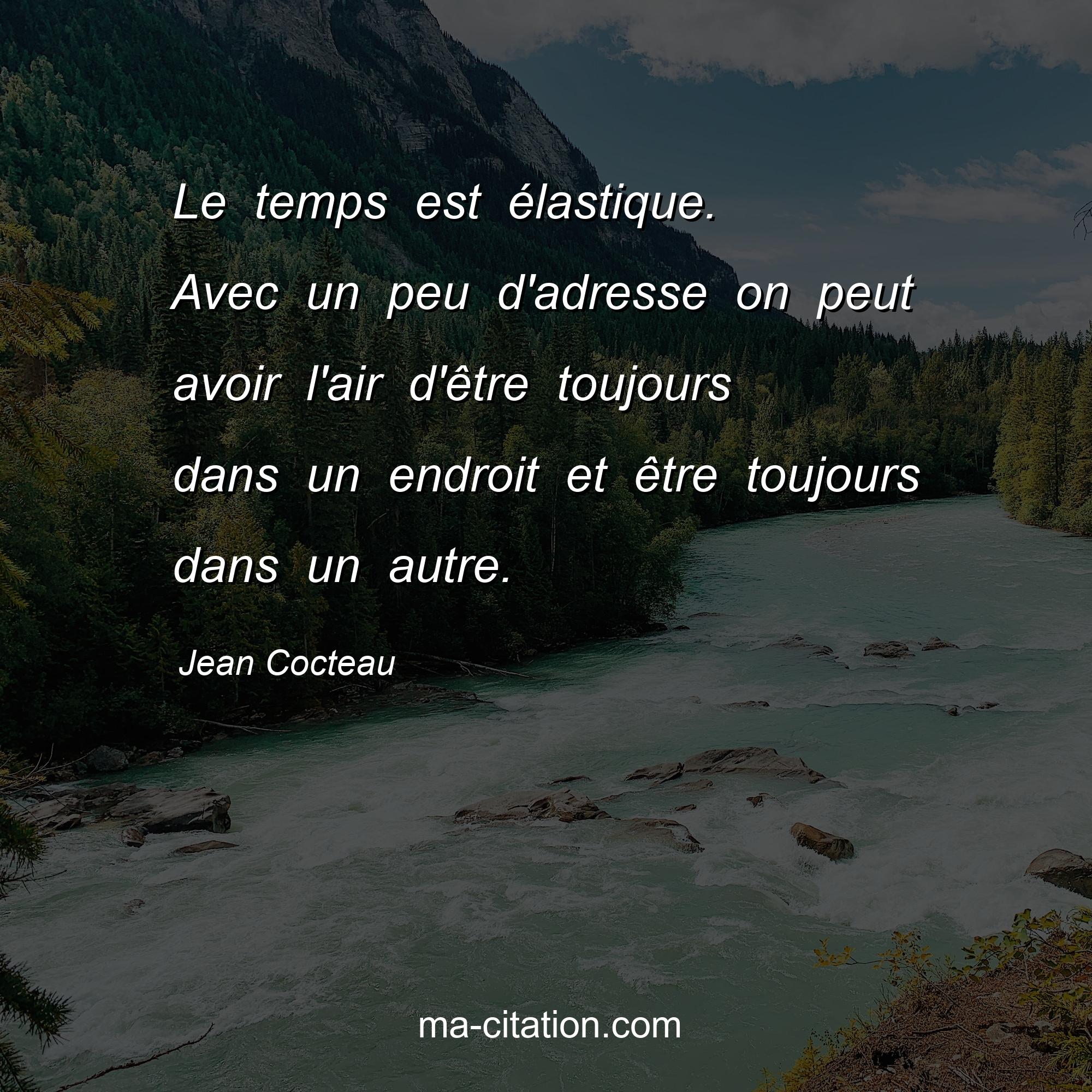 Citation sur la vie de Jean Cocteau :Le temps est élastique. Avec un peu d'adresse on peut avoir l'air d'être toujours dans un endroit et être toujours dans un autre.